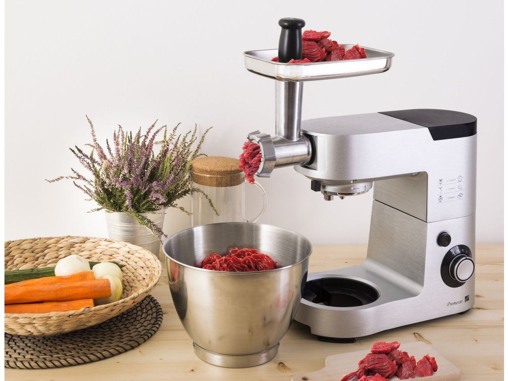 - Mlynček na mäso obsahuje 3 veľkosti mlecích doštičiek pre rôznu hrubosť mäsa. Príprava sekanej, fašírok alebo napríklad výborného tatárskeho bifteku je pre neho hračkou a pre vás radosťou.