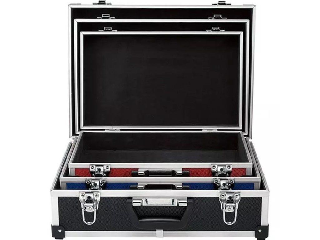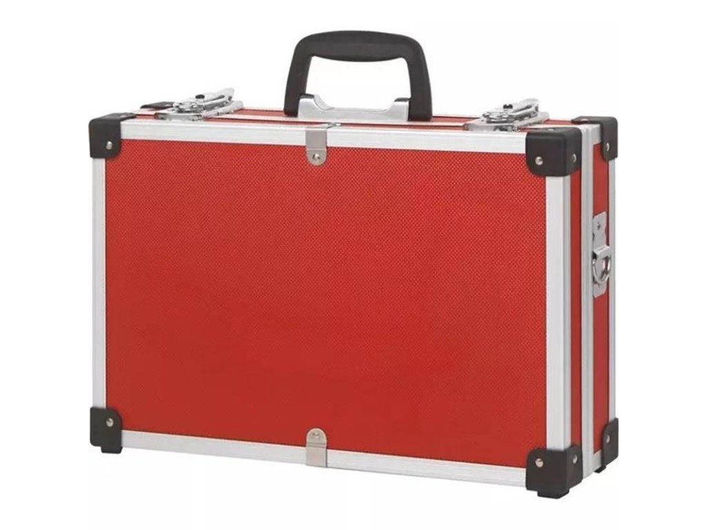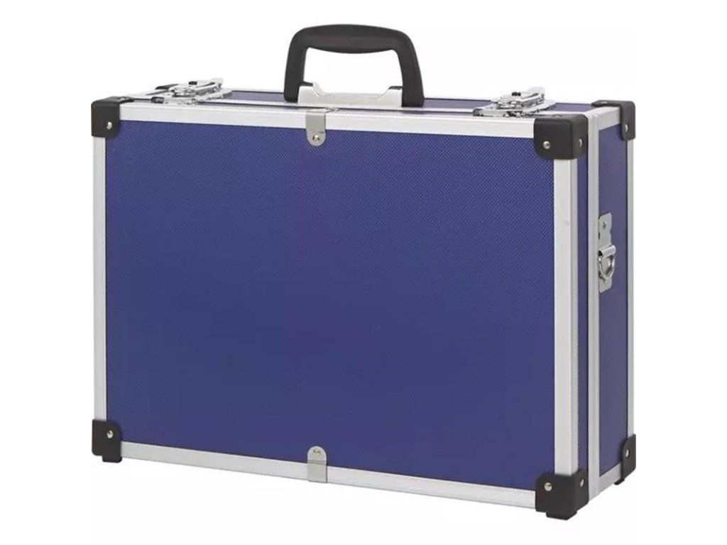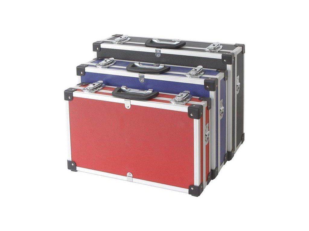 Praktická 3dílná sada kufrů. Ideální pomocník při skladování a transportu. Měkká výplň a vyztužené plastové rohy zvyšují ochranu. Ke každému kufru lze připevnit ramenní popruh (součástí dodávky). Elegantní kufříky tvořené hliníkovým rámem a plastovými prvky jsou pevnou a praktickou pomůckou pro uskladnění a přepravu nářadí či jiných pomůcek. S uzamykatelným zámkem.