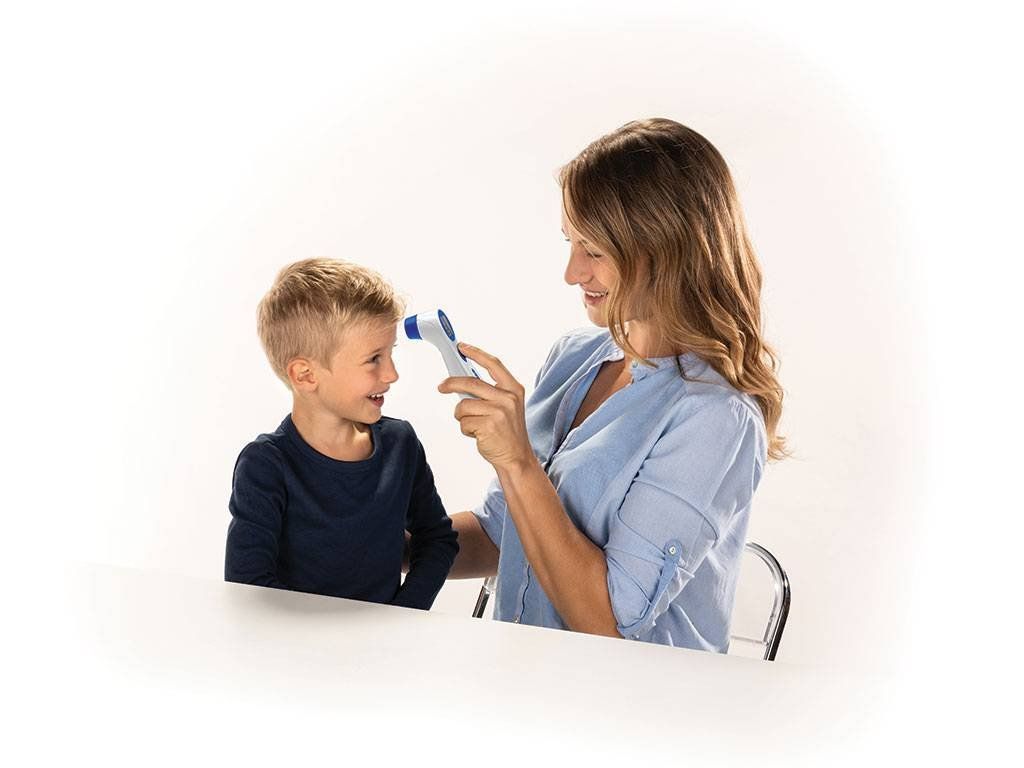 Infračervená technológia poskytuje najpokročilejší a najrýchlejší spôsob merania teploty. Aby bolo meranie presné, je dôležité správne umiestnenie teplomera voči meranému objektu a ich vzájomná vzdialenosť. A ako použiť teplomer na čelo? Teplomer treba držať pred stredom čela vo vzdialenosti 1 až 5 cm od pokožky. Týmto spôsobom je možné teplotu merať rýchlo a presne. Teplomer je vhodný pre dospelých, ale aj pre deti, takže ho viete použiť ako detský teplomer.