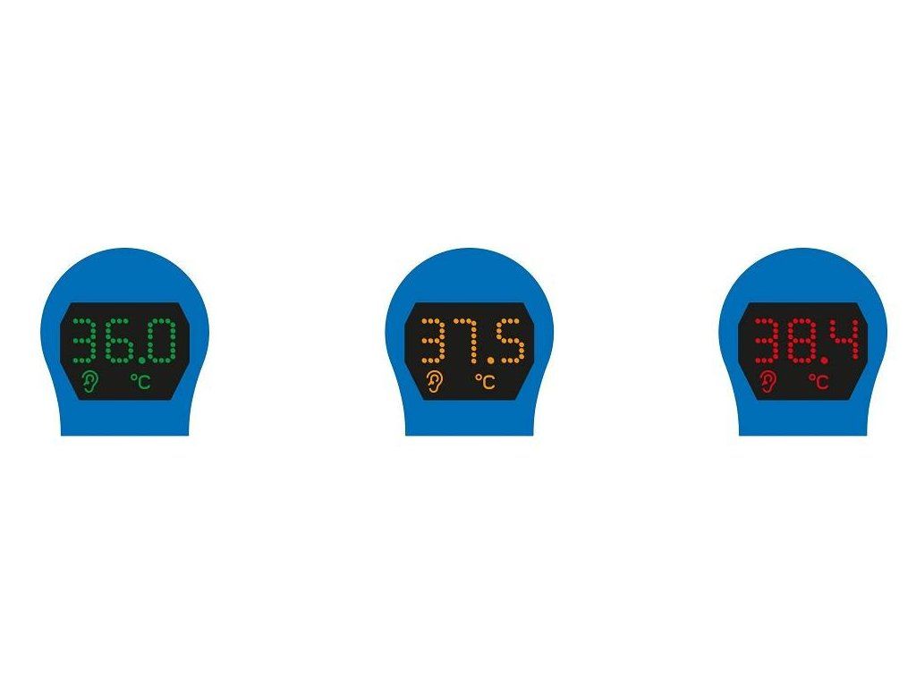 - LED displej v 3 farbách: zelená (normálna teplota) / žltá (zvýšená teplota) / červená (horúčka)