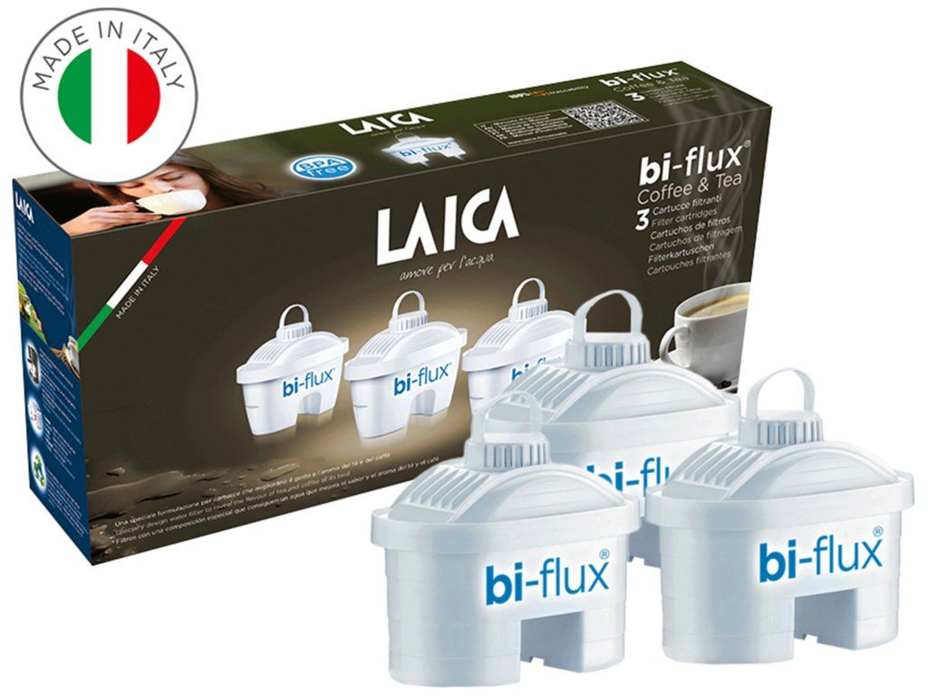 Filtračná patróna na vodu Bi-flux s 5-stupňovou technológiou je nepostrádateľnou súčasťou každej filtračnej kanvice LAICA. Jedna filtračná patróna dokáže filtrovať až 150 l vody z kohútika. To je presne 100 bežných PET fliaš. Bi-flux filter navyše zbavuje kohútikovú vodu chlóru, prípadných herbicídov a pesticídov, ťažkých kovov, a navyše zlepšuje chuť a zároveň vôňu vody. Taktiež dokáže efektívne redukovať vodný kameň. Vďaka tomu sa odporúča ju používať napr. v žehličkách alebo kávovaroch, vďaka čomu predlžuje ich životnosť. Filtračné patróny Bi-flux sú vysoko účinné domáce filtre s medzinárodnou certifikáciou.