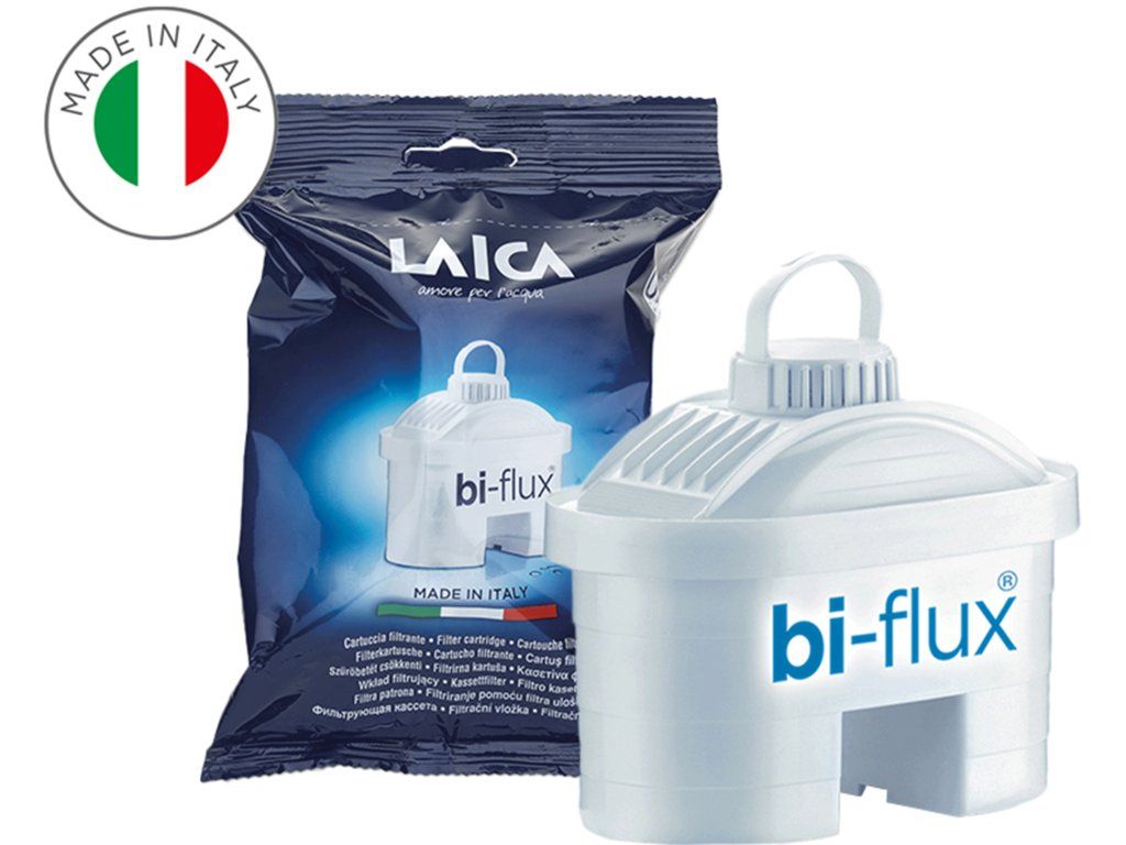 Filtračná patróna na vodu Bi-flux s 5-stupňovou technológiou je nepostrádateľnou súčasťou každej filtračnej kanvice LAICA. Jedna filtračná patróna dokáže prefiltrovať až 150 l vody z kohútiku. To je presne 100 bežných PET fliaš. Bi-flux filter navyše zbavuje kohútikovú vodu chlóru, prípadných herbicídov a pesticídov, ťažkých kovov, a navyše zlepšuje chuť a vôňu vody. Efektívne redukuje vodný kameň. Vďaka tomu sa ju odporúča používať napríklad v žehličkách alebo kávovaroch, čím predlžuje ich životnosť.