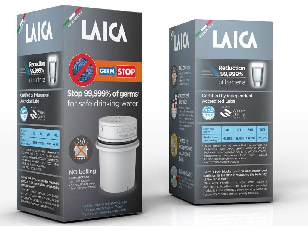 Filtračná patróna Germ-STOP je filter na pitnú vodu v miestach, kde môže hroziť jej zhoršená kvalita. Patentovaná technológia ultra-filtrácie dokáže z vody z vodovodu odstrániť všetky baktérie a mikróby bez prevarenia. Jedna filtračná patróna dokáže prefiltrovať až 1000 litrov vody. Po konci životnosti filtra dochádza k blokácii pórov a filter už neprepúšťa žiadnu vodu. Vysoko účinný domáci filter na kohútikovú vodu je určený pre potreby všetkých, ktorý bojujú s problematickými zdrojmi pitnej vody alebo nedostatočne kvalitnou vodou z kohútiku. Filtračná patróna Germ-STOP dokáže redukovať až 99,999 % baktérií a mikróbov.