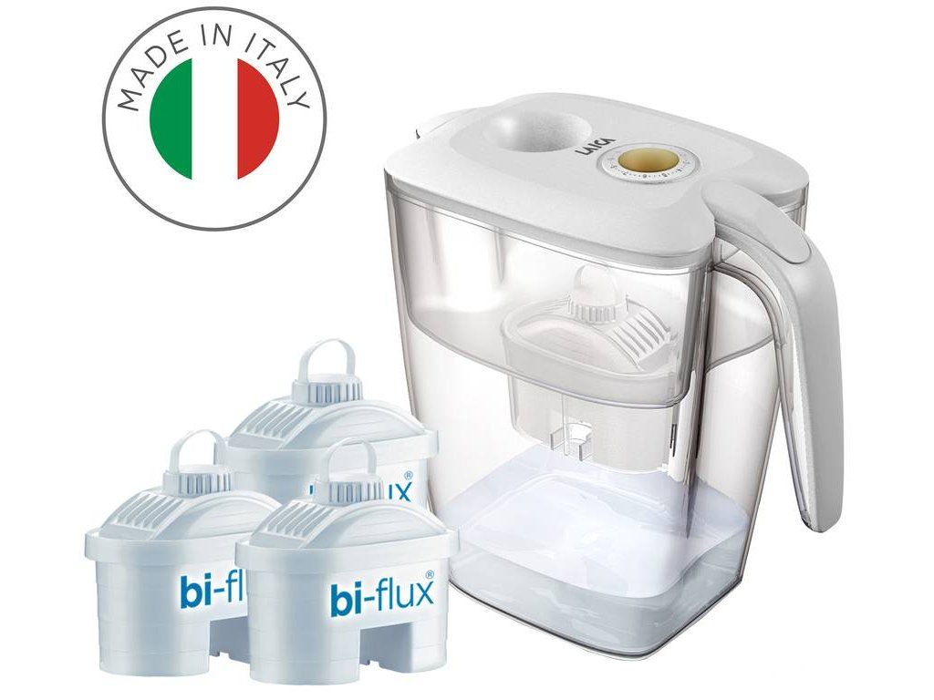Sada XXL filtračnej kanvice LAICA Firenze s objemom 3,7 l a troch filtrov Bi-flux je ideálnym riešením pre pohodlné filtrovanie pitnej vody z kohútika v domácnosti alebo kancelárii. Zaistí vám dostatok chutnej a osviežujúcej vody počas celého dňa. Patentovaný filter Bi-flux s aktívnym uhlím čistí vodu z vodovodu od nepríjemného zápachu alebo chuti chlóru. Navyše ju zbaví herbicídov, pesticídov a ďalších látok, ktoré sa v nej môžu vyskytovať. Kanvica sa ľahko zmestí do dverí bežnej chladničky. Vďaka unikátnemu Bi-flux filtru z aktívneho uhlia bude vaša voda nielen priezračne čistá, ale zároveň sa v nej zachová optimálne množstvo minerálov. Tento set dokáže prefiltrovať až 450 litrov vody resp. vystačí na tri mesiace filtrácie. Keď si namiesto vody v plaste dáte filtrovanú vodu z kohútika, šetríte peniaze aj prírodu.