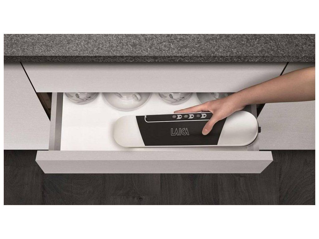 Model LAICA Slim Magnet sa používa na odsávanie vzduchu z vákuových vreciek alebo fólií. Zariadenie pracuje rýchlo a efektívne. Môžete si vybrať dva programy – GENTLE na vákuovanie krehkých alebo jemnejších potravín (maliny, krehké pečivo a pod.) a NORMAL na klasické vákuovanie (marinovanie mäsa, zeleniny, hotových jedál a pod.). Následne sa spoj vrecka alebo fólie uzavrie a ani vzduch, ani kvapalina sa nedostanú von. Takto balené potraviny môžete skladovať na akomkoľvek mieste – v špajzy, v chladničke alebo v mrazničke.