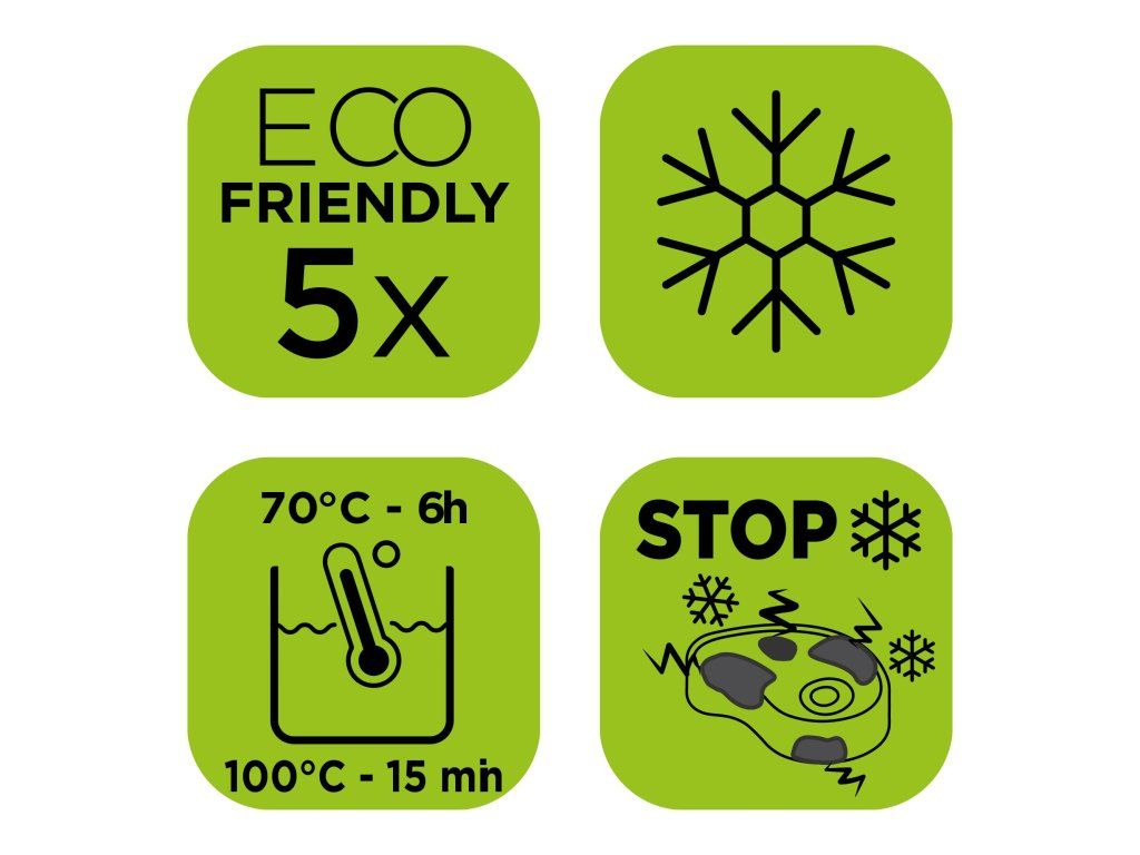 - Opakovane použiteľné (okrem mäsa, rýb a mastných jedál)