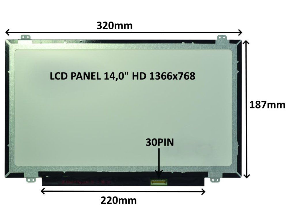 LCD PANEL 14,0'' HD 1366x768 30PIN MATNÝ / ÚCHYTY HORE A DOLE
