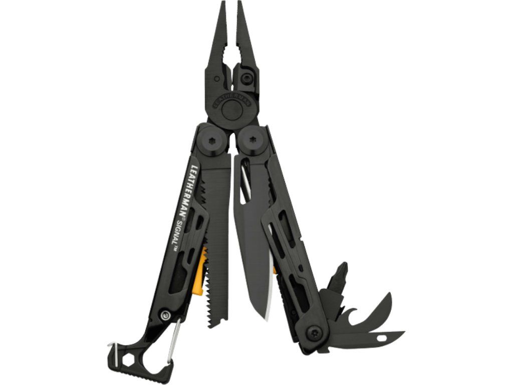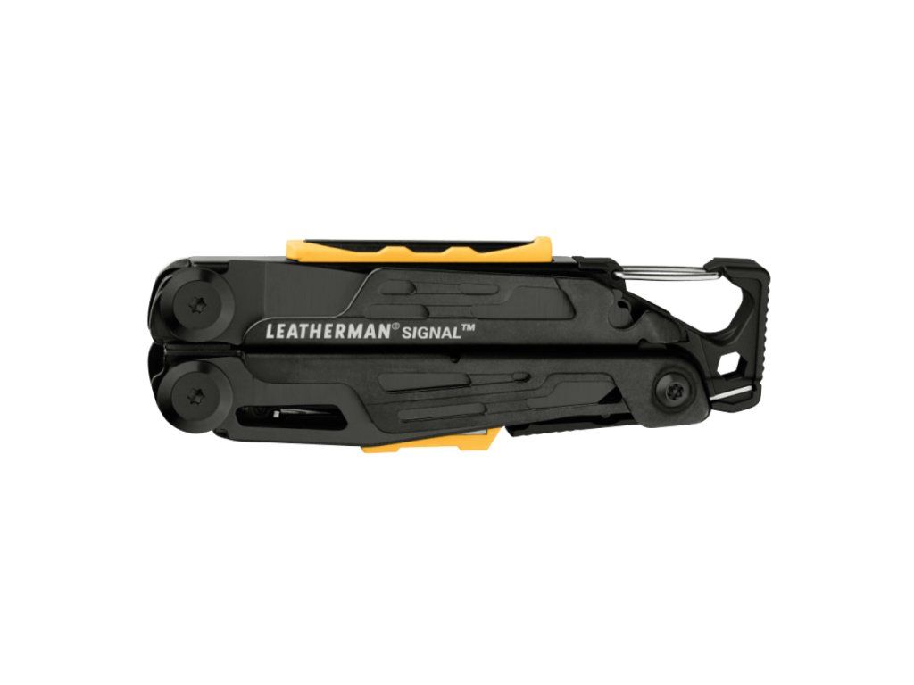 Multifunkčný nástroj v čiernom prevedení Leatherman SIGNAL Black so zakomponovanými 19 nástrojmi, s telom z nehrdzavejúcej ocele v kombinácií DLC povlakom s vysokým obsahom uhlíka.