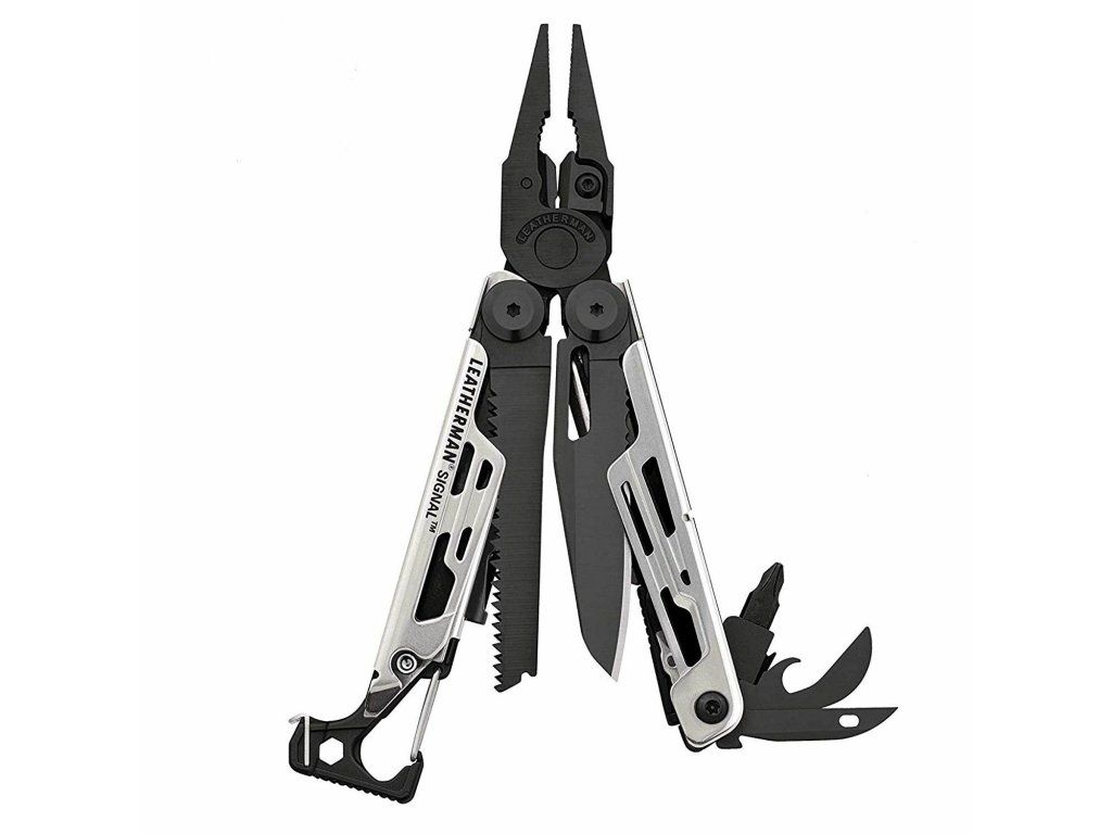 Multifunkčný nástroj v čierno-striebornom prevedení Leatherman SIGNAL BLACK/SILVER so zakomponovanými 19 nástrojmi, s telom z nehrdzavejúcej ocele v kombinácií DLC povlakom s vysokým obsahom uhlíka.