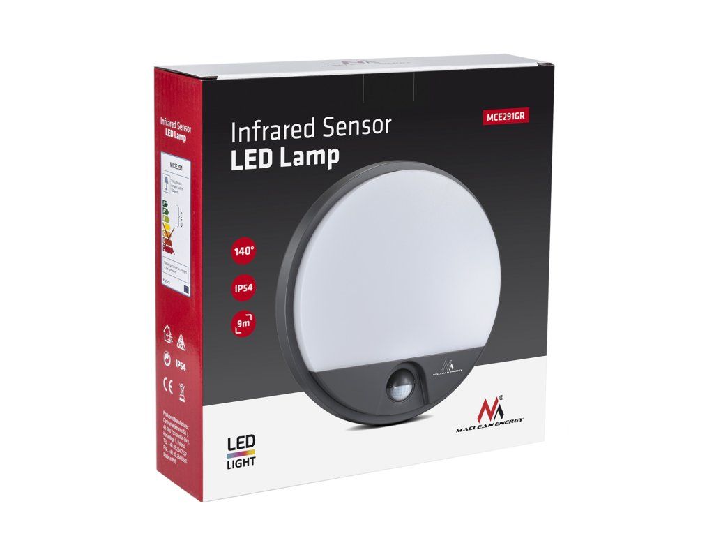 Súprava obsahuje- LED svietidlo s infračerveným detektorom pohybu MCE291 GR