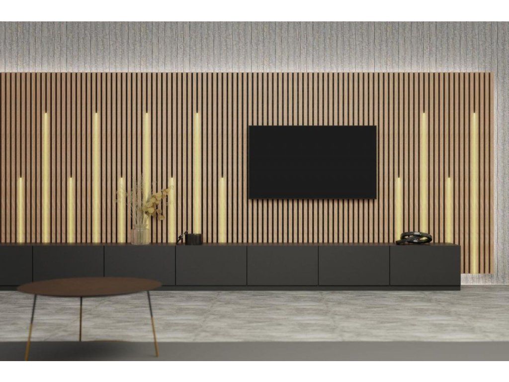 Správne zvolené osvetlenie dokáže aj navodiť atmosféru a podčiarknuť detaily interiéru. LED osvetlenie v akustických paneloch je vizuálnym zážitkom, navyše tiež výrazne šetrí energiu aj peniaze. Spojenie dizajnového lamelového obkladu so svetelným profilom tvorí krásny aj praktický dizajnový prvok. Pozrite sa, aké má prednosti.