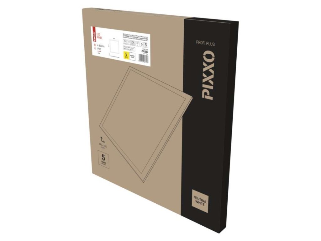 LED panel PIXXO 60×60, štvorcový vstavaný biely, 48W neutr.b.,IP65