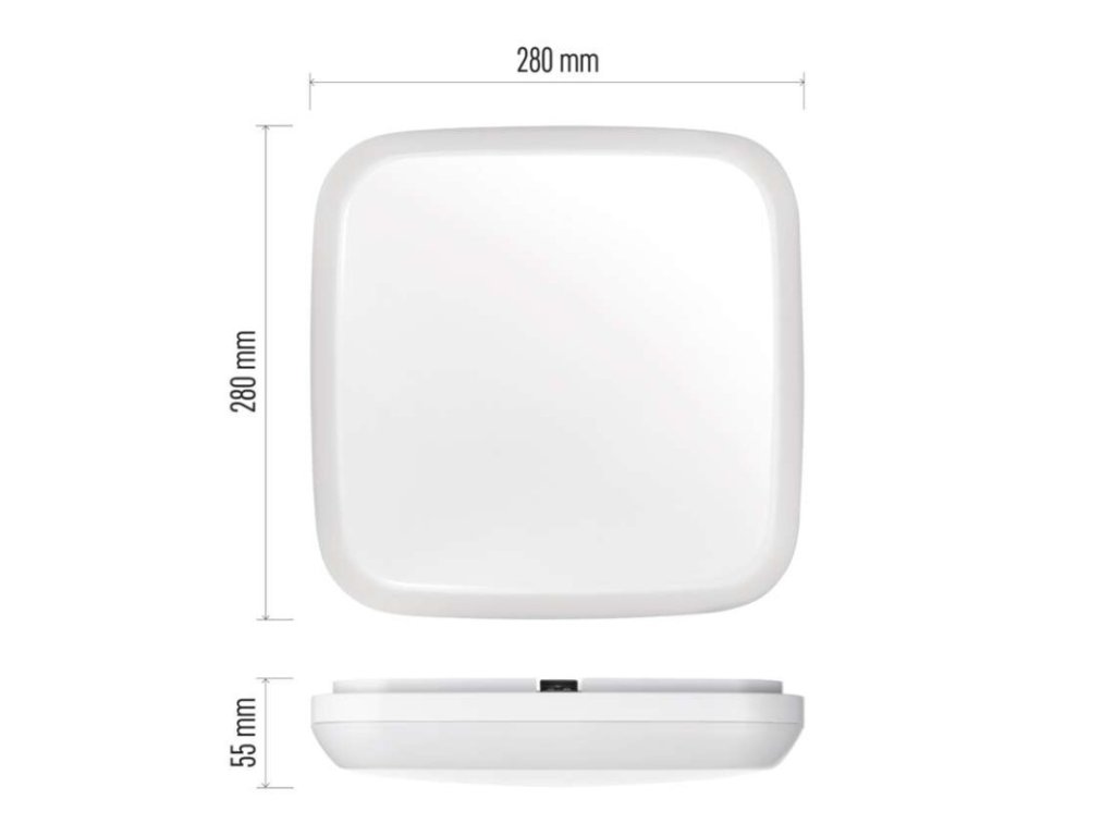diaľkový ovládač: nie|do chodby a na schodisko: áno|do dielne a garáže: áno|do kancelárie: nie|do kuchyne: áno|do kúpeľne: áno|do obývačky, spálne a detskej izby: nie|dosah senzora: nemá senzor|do záhrady a na balkón: áno|farba svetla: neutrálna biela|farba tela: biela|flicker-free: áno|frekvencia: 50/60 Hz|index podania farieb (CRI): Ra > 80|kategória: CLASSIC|krytie: IP54|materiál difúzora: plast (PC)|materiál LGP: neuvádza sa|materiál tela: plast (PC)|montážny otvor: neuvádza sa|možnosť stmievania: nie|náhrada za žiarovku: 115 W|napätie: 220–240 V|pohybový senzor: nie|predajný obal: 1 ks, krabica|príkon: 18 W|prúd: 130 mA|rada: DORI|rozmer: 280 × 280 × 55 mm|spôsob montáže: prisadené|svetelná účinnosť: 86 lm/W|svetelný tok: 1 800 lm|teplota chromatičnosti: 4 000 K|tvar: štvorec|typ difúzora: mliečny|typ svietidla: klasické svietidlo|účinník: > 0,5|UGR<: neuvádza sa|uhol vyžarovania: 115°|umiestnenie: stropné/nástenné|výstupný prúd zo zdroja: neuvádza sa|záručná doba: 2 roky|zdroj svetla: LED|životnosť: 25 000 hodínDodatočné parametre