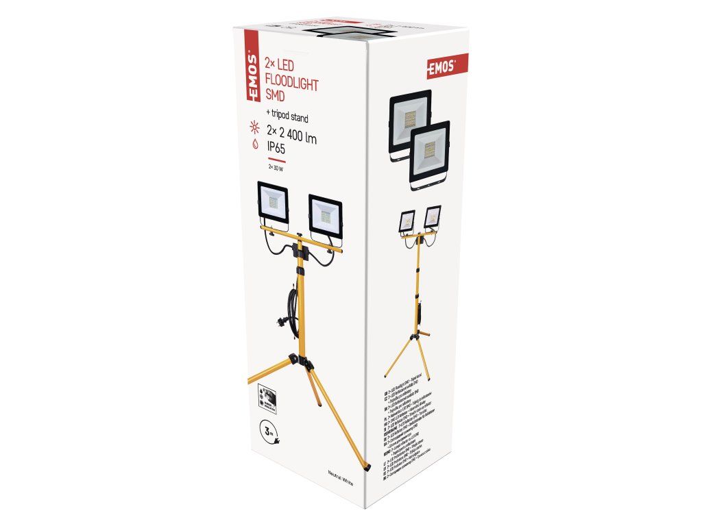 Značka EMOS Objednací číslo ZS2231.2 Produktové číslo 1531223120 EAN 8592920067567 příkon 2× 30 W světelný tok 2× 2 400 lm PIR senzor ne krytí IP65 napájení ze sítě řada HOBBY SLIM použití přenosné zdroj světla LED teplota chromatičnosti 4 000 K kategorie CLASSIC barva světla neutrální bílá index podání barev (CRI) Ra > 80 dosah PIR senzoru nemá PIR rozsah pracovní teploty -20 °C až +40 °C životnost 25 000 hodin barva černá/žlutá napětí 220–240 V~ délka přívodního kabelu 3 m akumulátor neuvádí se materiál difuzoru sklo typ přívodního kabelu H07RN-F materiál těla hliník stmívání ne doba svícení na AKU neuvádí se flicker-free ano frekvence 50 Hz materiál přívodního kabelu guma počet průchozích zásuvek 0 proud 270 mA stupeň ochrany proti mechanickým nárazům IK08 světelná účinnost 80 lm/W typ průchozích zásuvek neuvádí se účiník > 0,5 úhel vyzařování 120° zkušební žárovka součástí balení ne záruční doba 2 roky rozměr 860 × 860 × 1 850 mm energetická třída použitého světelného zdroje neuvádí se prodejní obal 1 ks, krabiceDodatočné parametre