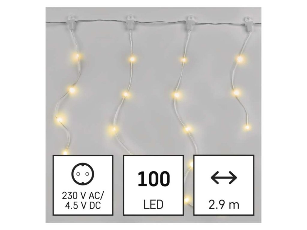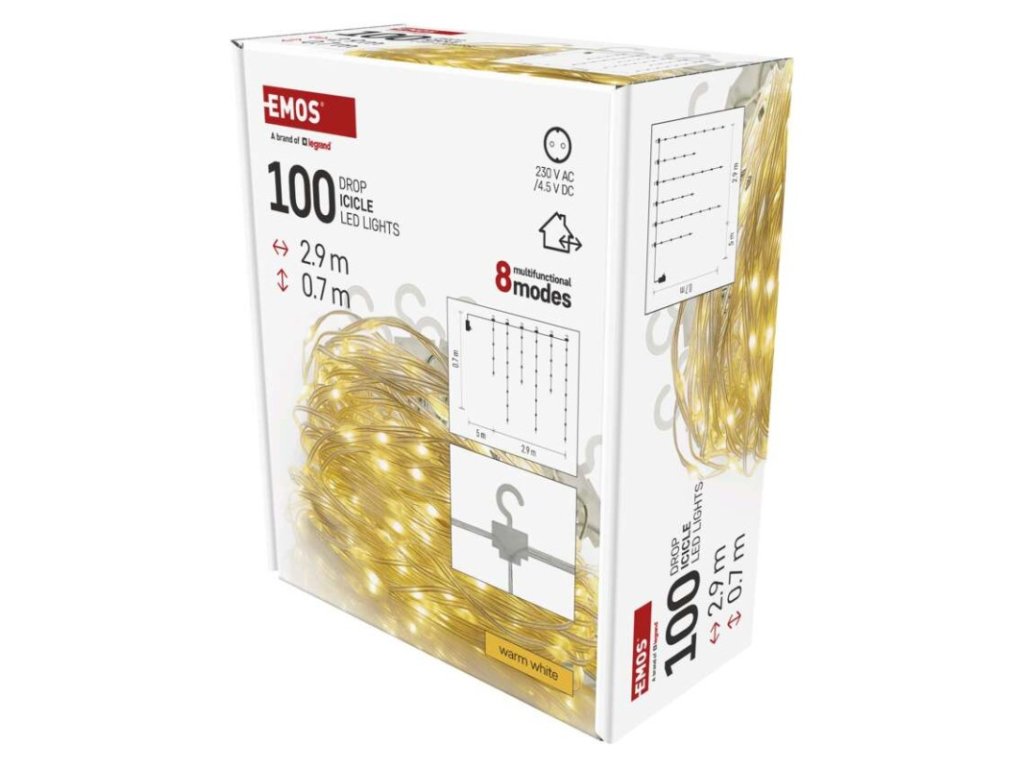 LED vianočná drop reťaz – cencúle, 2,9 m, vonkajšia aj vnútorná, teplá biela, programy