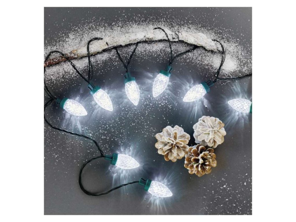 LED vianočná reťaz – šišky, 9,8 m, vonkajšia aj vnútorná, studená biela, programy