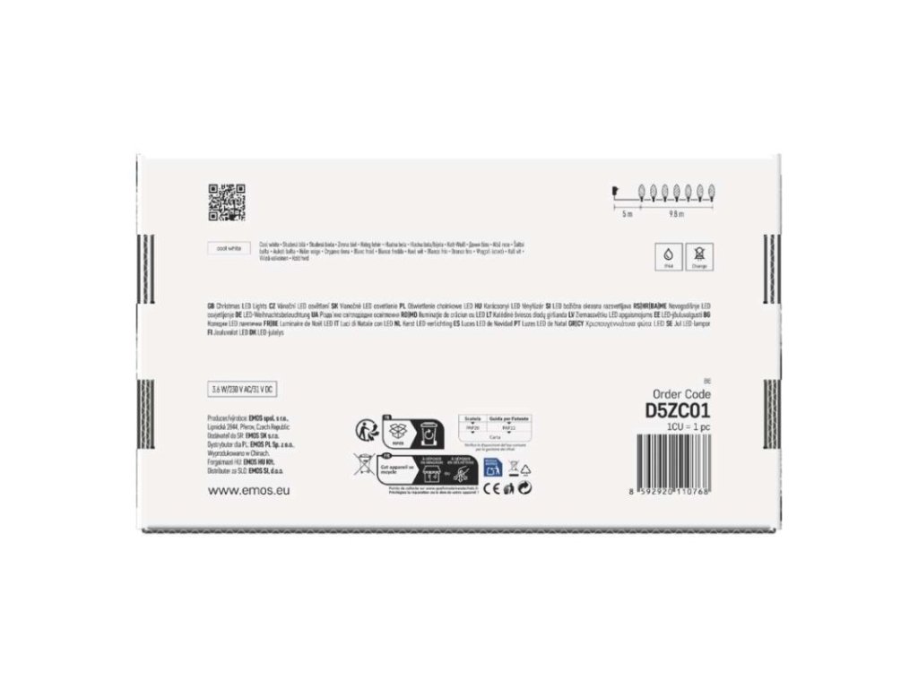 časovač: nie|diaľkový ovládač: nie|dĺžka prívodu: 5 m|farba drôtu: zelená|farba svetla: studená biela|funkcia: 8 módov (multifunkcie)|krytie: IP44|LED medzera: neuvádza sa|materiál: plast|možnosť prepojenia: nie|počet LED: 50|použitie: vonkajšie aj vnútorné|predajný obal: 1 ks, krabica|pre výšku stromu: neuvádza sa|príkon: 3,6 W|produkt: reťaz|rozmer: 9,8 m|tvar: sviečka|typ napájania: sieťový adaptér|veľkosť LED: neuvádza sa|vstupné napätie: 230 V AC|výstupné napätie: 31 V DC|záručná doba: 2 roky|životnosť: 10 000 hodínDodatočné parametre