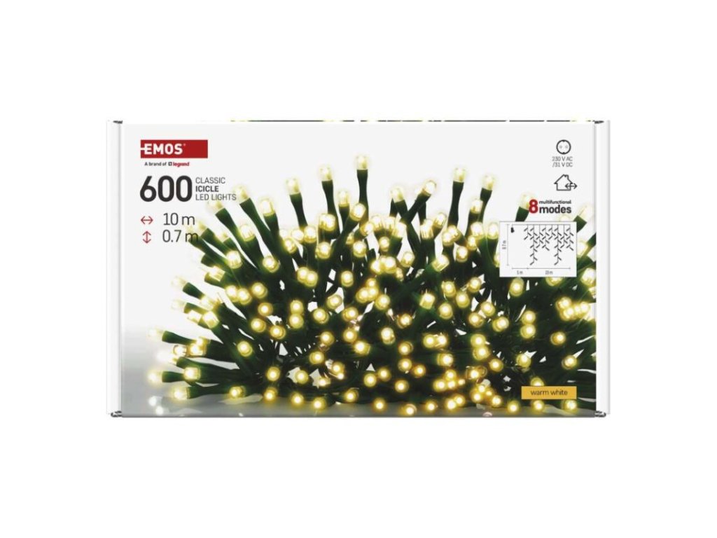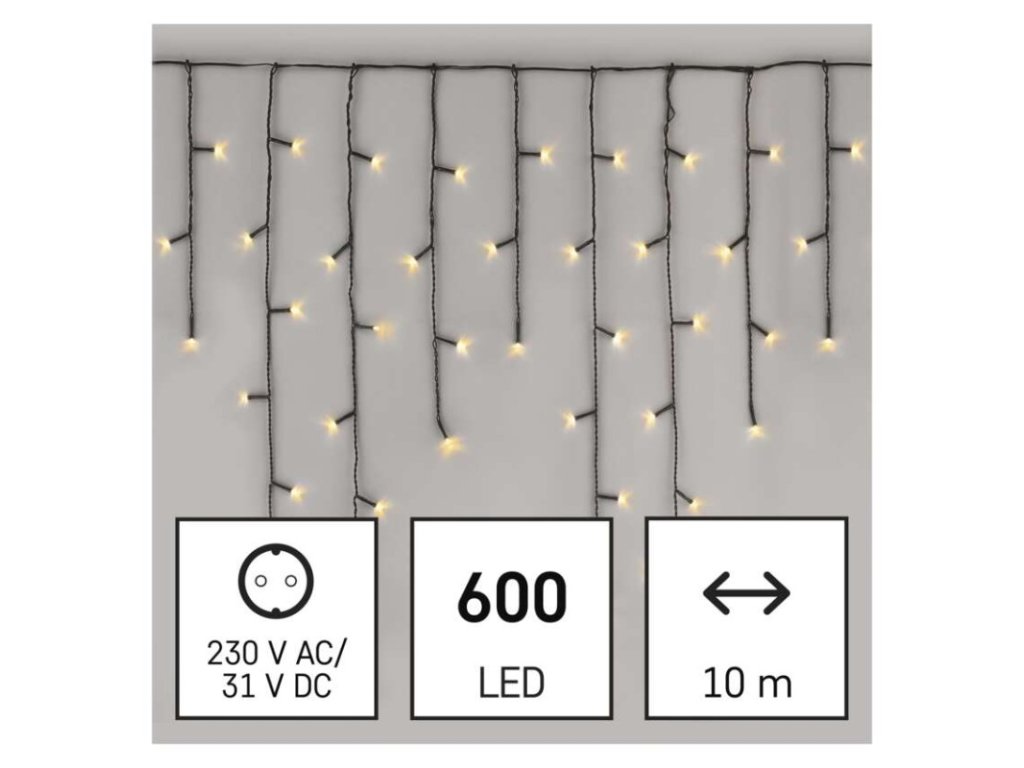časovač: nie|ďalšie funkcie: #|diaľkový ovládač: nie|dĺžka prívodu: 5 m|farba drôtu: zelená|farba svetla: teplá biela|funkcia: 8 módov (multifunkcie)|jazyky aplikácie: #|kompatibilita: #|krytie: IP44|LED medzera: 10 cm|materiál: PVC|možnosť prepojenia: nie|notifikácie do mobilnej aplikácie: #|ovládanie hlasovými asistentmi: #|počet LED: 600|podporované operačné systémy: #|použitie: vonkajšie aj vnútorné|predajný obal: 1 ks, krabica|prenosová frekvencia: #|pre výšku stromu: neuvádza sa|príkon: 9 W|produkt: kvaple|protokol: #|rozmer: 10 × 0,7 m|tvar: klasický|typ napájania: sieťový adaptér|veľkosť LED: 5 mm|vstupné napätie: 230 V AC|výstupné napätie: 31 V DC|záručná doba: 2 roky|životnosť: 10 000 hodínDodatočné parametre