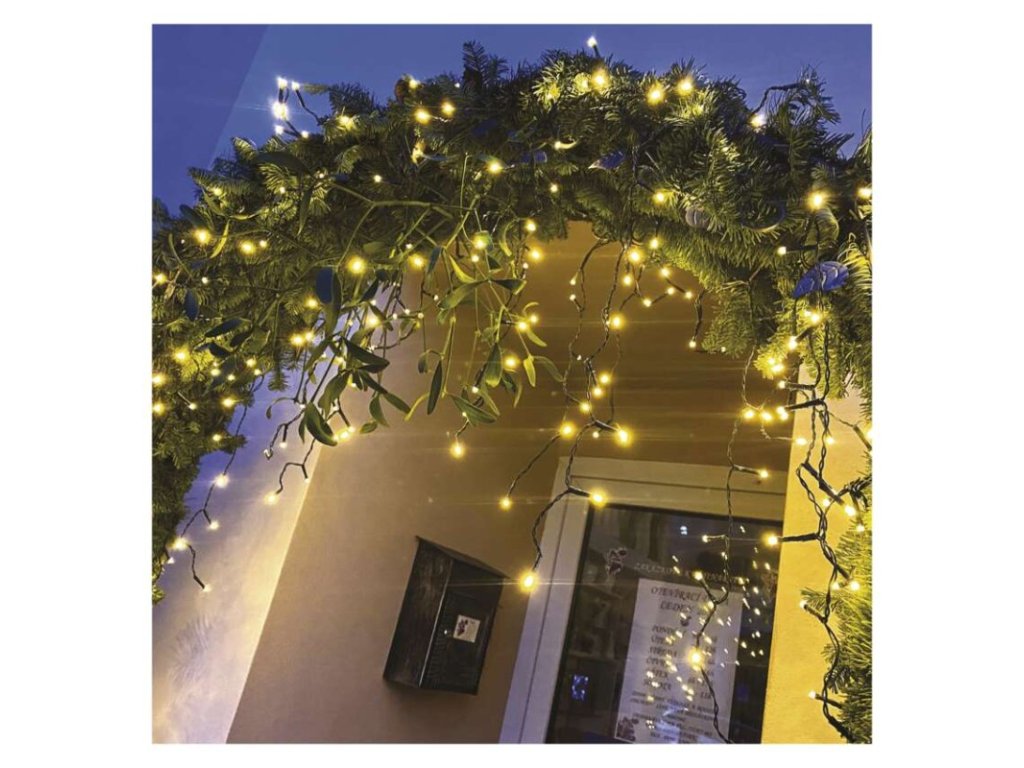 LED vianočné cencúle, 10 m, vonkajšie aj vnútorné, teplá biela, programy