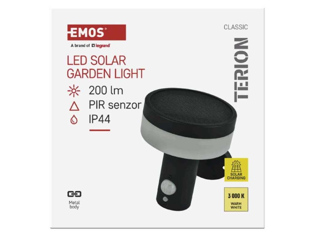 energetická trieda použitého zdroja svetla: –|farba: antracit|farba svetla: Teplá biela|fotovoltaický článok: 0,88 W|frekvencia: –|index podania farieb (CRI): > 80|kategória: CLASSIC|krytie: IP44|materiál: nehrdzavejúca oceľ|materiál difúzora: plast|napájanie: Li-Ion batéria 3,7 V/1 200 mAh|napätie: –|pätica (uchytenie žiarovky): –|predajný obal: 1 ks, krabička|príkon: 2 W|rada: TERION|rozmer: 147 × 125 × 146 mm|rozsah pracovnej teploty: 0 ~ +40 °C|Rozsah snímača PIR: 10 m|senzor PIR: áno|súmrakový spínač: áno|svetelný tok: max. 200 lm|teplota chromatičnosti: 3000 K|vstavaný vypínač: áno|zdroj svetla: LED|žiarovka súčasťou balenia: –|životnosť: 25 000 hDodatočné parametre