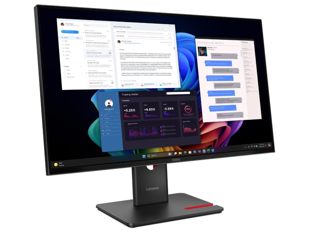 Lenovo ThinkVision T27UD-40 *27'' *IPS Displej *4K rozlišení *4ms odezva Typ obrazovky: In-Plane Switching (IPS) Podsvícení: WLED Úhlopříčka [palce]: 27 Rozlišení: 3840x2160 Rozteč bodu [mm]: 0.1554 Obnovovací frekvence [Hz]: 48 až 60 Poměr stran: 16:9 Povrch displeje: Antireflexní Jas [cd/m2]: 350 Kontrast: 1500:1 Odezva [ms]: 4ms GtG (Extreme mode) / 6ms GtG (Typical mode) Pozorovací úhly (Horizontál/Vertikál): 178° / 178° Počet barev: 1.07 Billion USB konektory: *1x USB-C® (USB 10Gbps, PD 3.0 100W, USB upstream) *3x USB-A (USB 5Gbps, 1x BC1.2, USB downstream) *1x USB-C (USB 5Gbps, 15W PD, USB downstream) Video konektory: *1x HDMI® 2.1 TMDS *1x DP 1.4 (HBR3) *1x USB-C® (5Gbps, DP 1.4 Alt Mode HBR3) Síťové konektory: *1x RJ45, Ethernet (10M/100M/1000M) Napájení: Integrované Spotřeba (typická / max.) [W]: 18W / 175W Montáž na zeď: VESA 100x100mm Naklápění monitoru: Naklápění, Otáčení, Pivot, Výškově nastavitelný Barva: Eclipse Black Rozměry (se stojanem, ŠxHxV mm): 613,4 x 195,0 x 384,1-539,1mm Hmotnost [kg]: 9,3 Záruka: 3 roky Odkaz na stránky výrobce: https://psref.lenovo.com/Detail/ThinkVision_T27UD_40?M=64AFGAT2EUDodatočné parametre