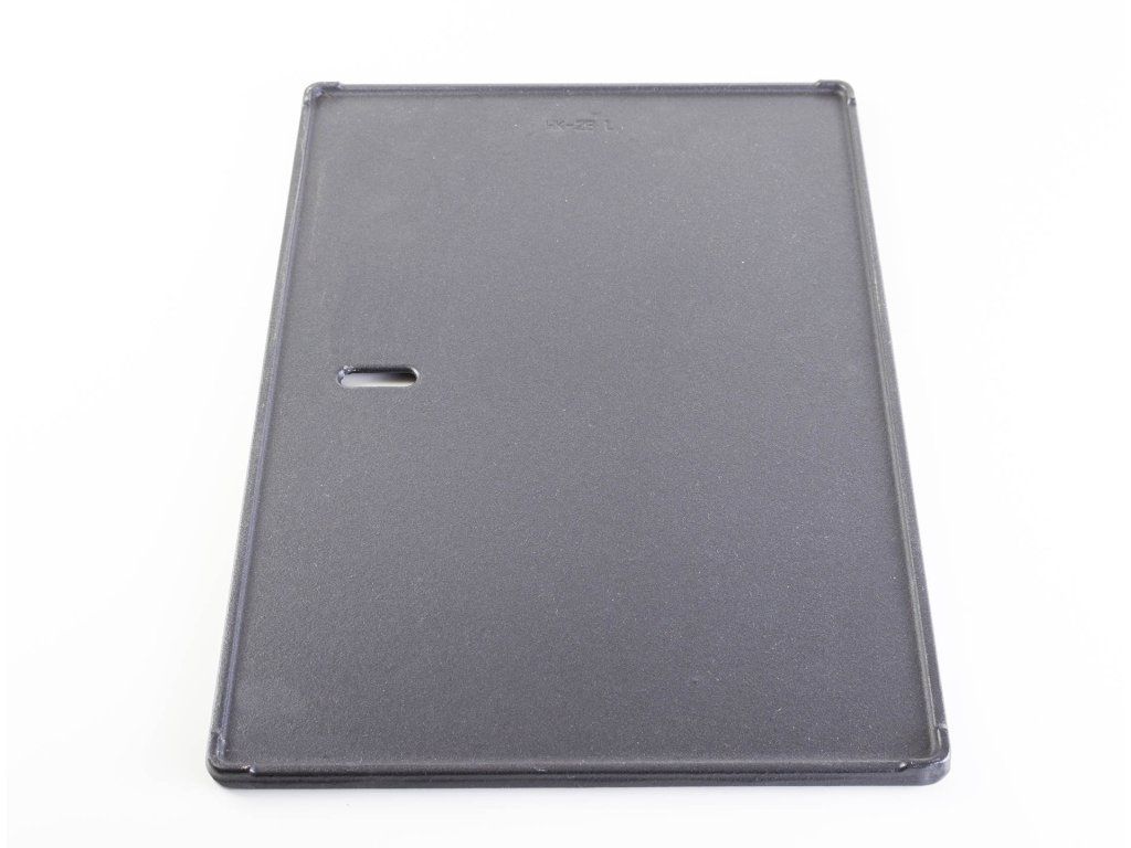 Liatina patrí medzi najodolnejšie materiály, ktoré sa na grilovanie používajú. Je vysoko odolná proti vysokým teplotám a poškriabaniu. Na každej polovici liatinového plátu máte k dispozícii iný druh povrchu. Jedna polovica je hladká a využijete ju predovšetkým pre grilovanie nakrájanej zeleniny, vajíčok a syrov. Druhá polovica s vrúbkami je určená pre správne grilovanie steakov, väčších kusov zeleniny a rýb.