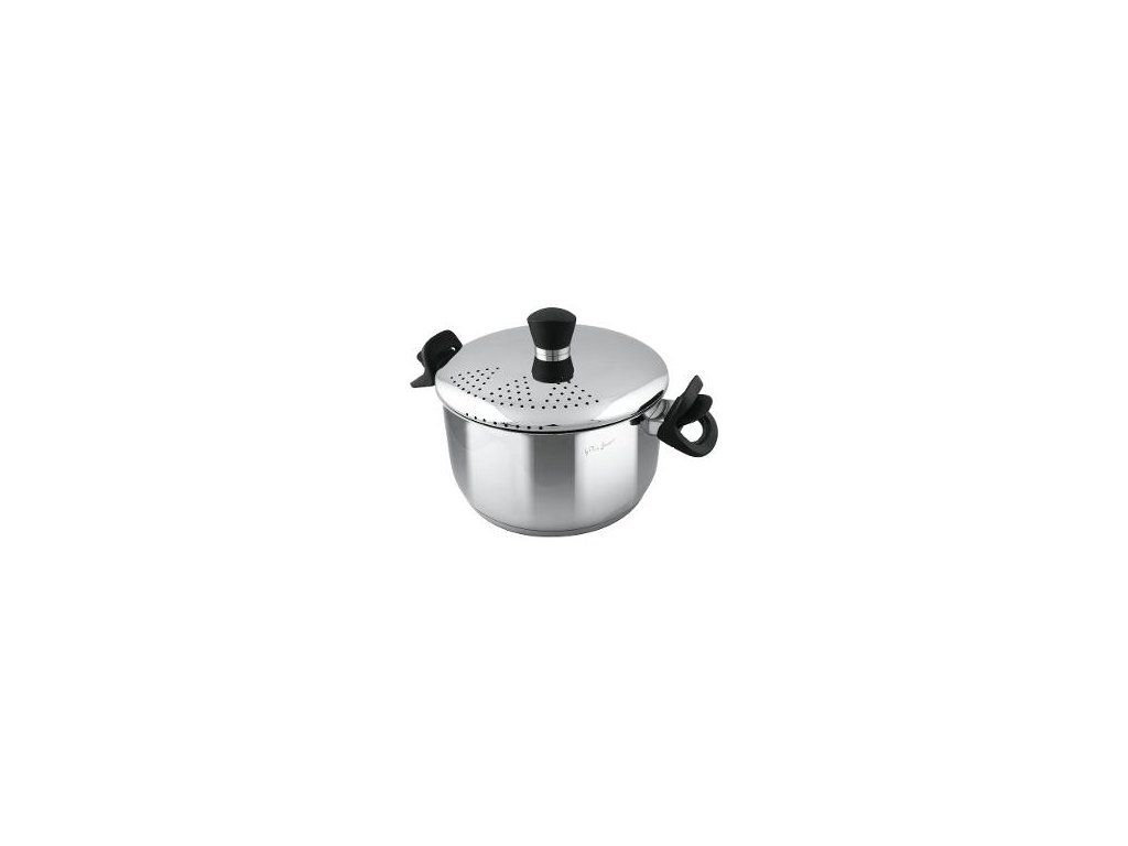 Vyrobené z prvotriednej nehrdzavejúcej ocele. Hrniec vyrobený z prvotriednej nehrdzavejúcej ocele vrátane pokrievky, vybavený hrubým sendvičovým dnom. Pokrievka s cediacim mechanizmom z nehrdzavejúcej ocele so špeciálnym zachytením pomocou výklopných rukovätí pre komfortné cedenie cestovín. Bakelitové držadlo pokrievky a rukoväti.Dodatočné parametre