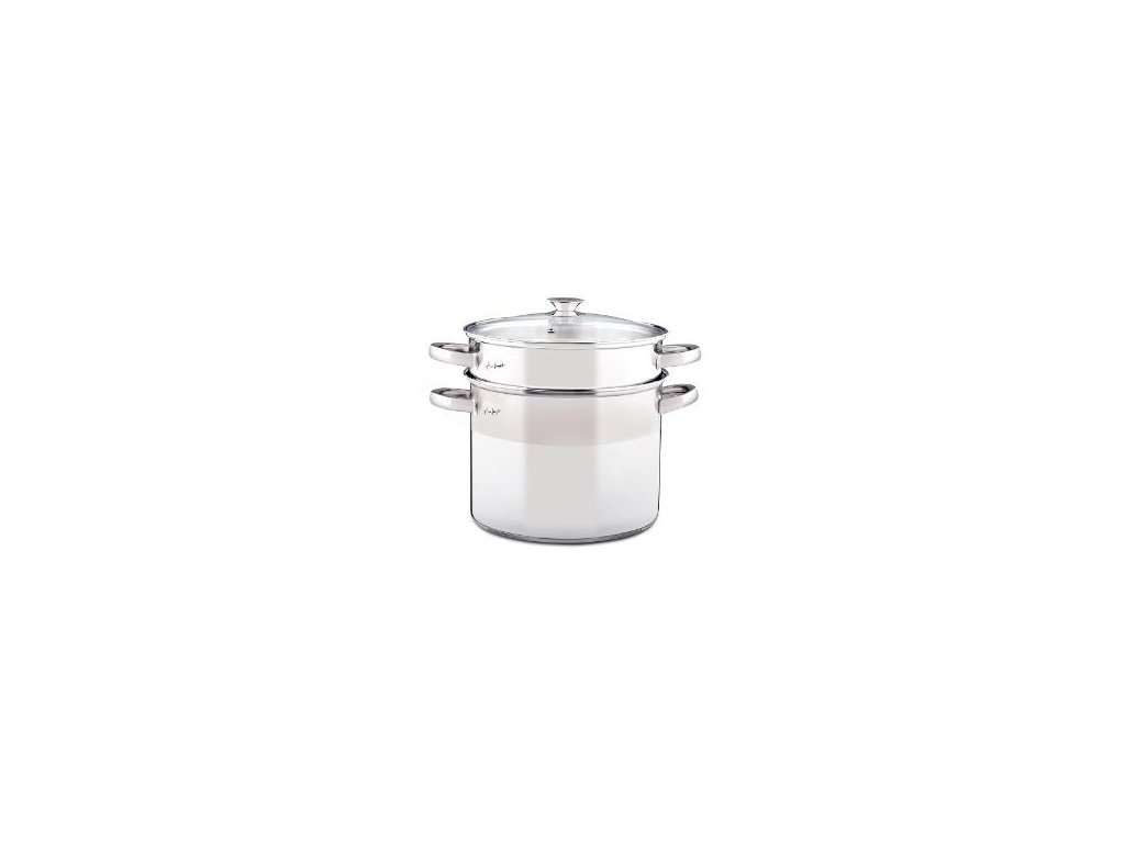 Vnútorný hrniec slúži ako parák alebo cedidlo je vyrobený z nehrdzavejúcej ocele 18/0 s vlastnými komfortnými rukoväťami pre oddelenúmanipuláciu