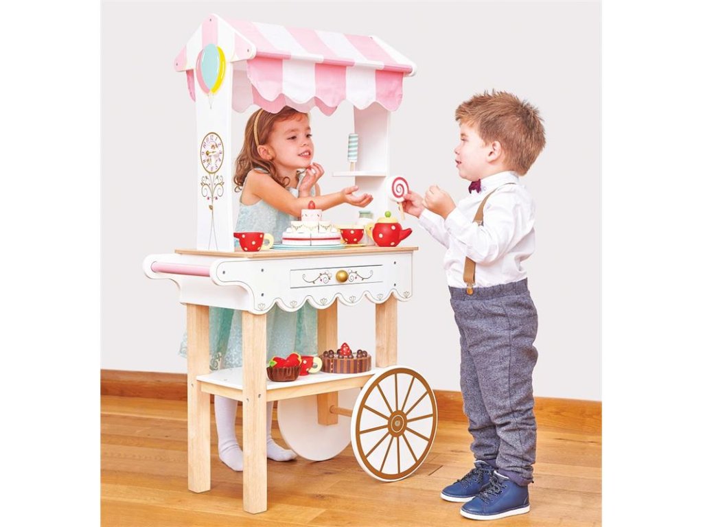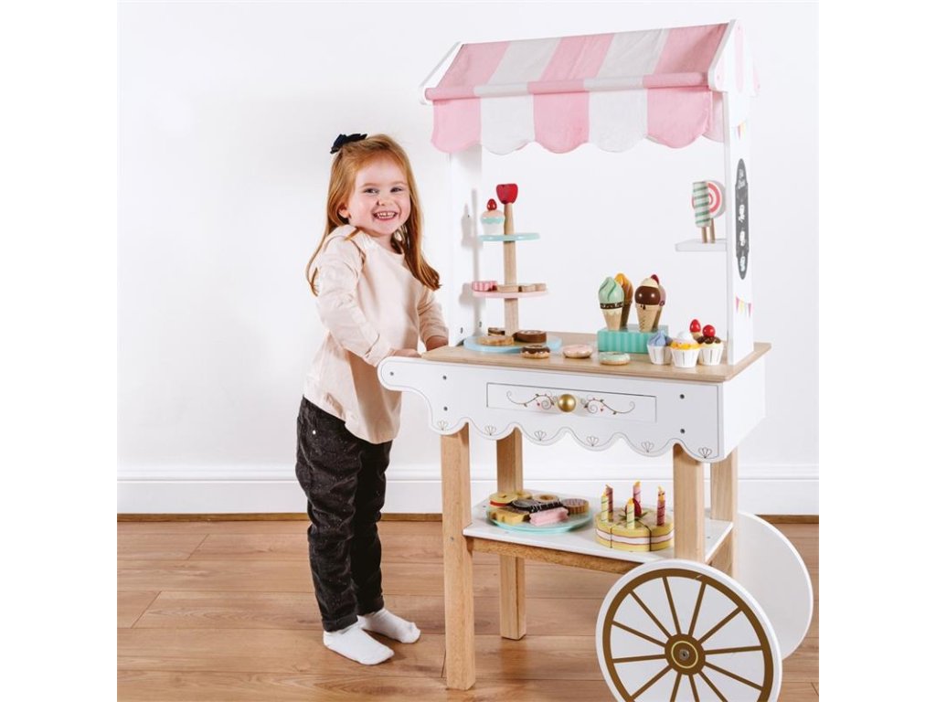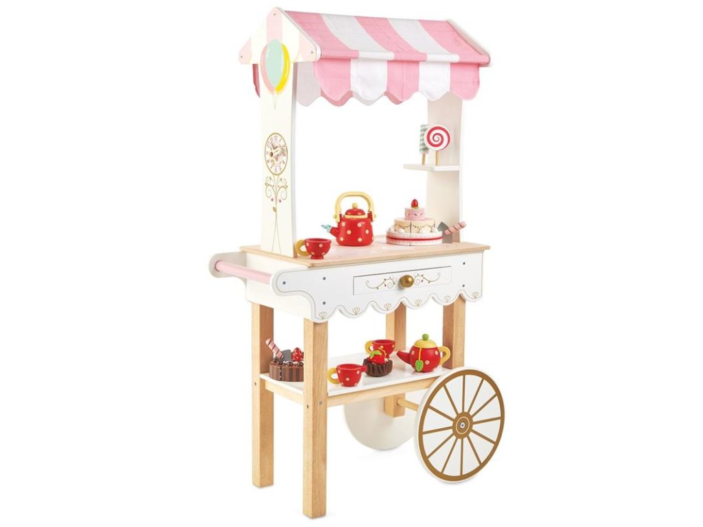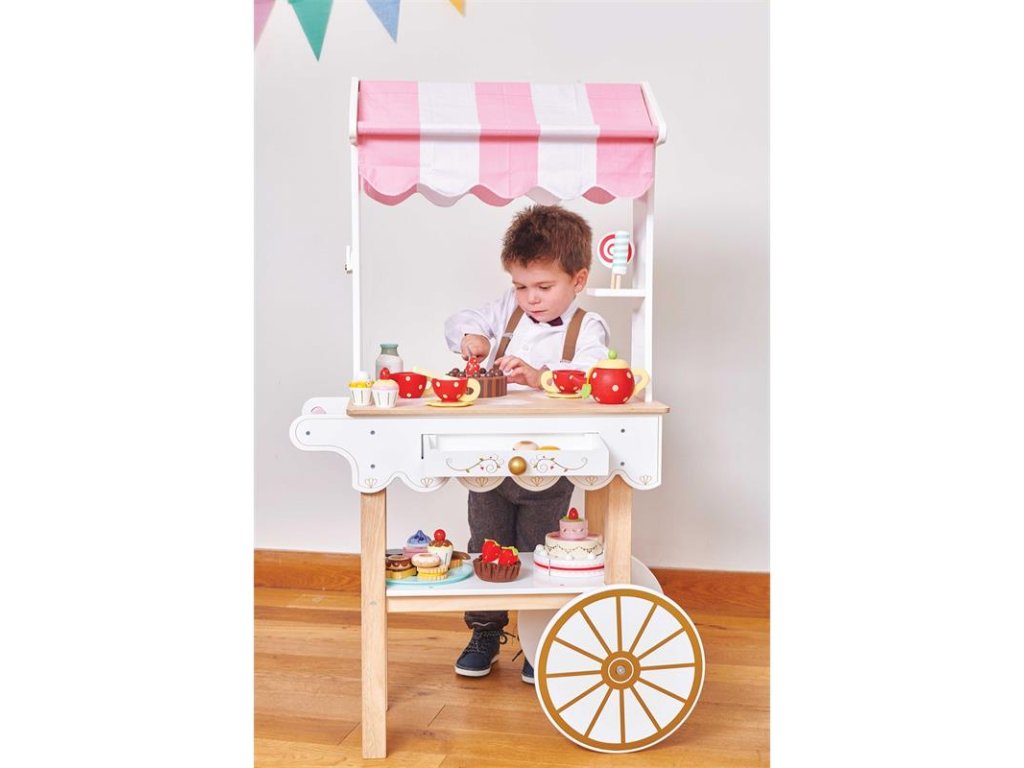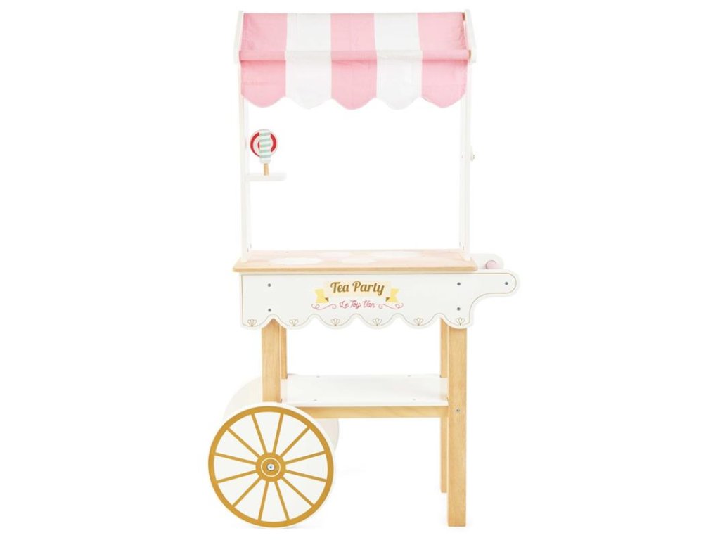 Kto chce čaj?! Klasický dvojkolesový vozík na čaj s krásnou pruhovanou strieškou je bielo-ružový, má aj prírodné drevené prvky. Má aj otváraciu zásuvku na uloženie vašich zásob. Na oboch stranách vozíka nájdete aj ilustrácie ponúkaných nápojov a koláčov. Detaily v zlatej farbe dodávajú čaju o piatej nádych rafinovanosti. Vozík má aj veľký úložný priestor a držiak na sladkosti. Vhodný na použitie s výrobkami z kolekcie Honeybake – zmrzlinami, koláčmi, nápojmi atď. Hlavné vlastnosti: - Vhodné na prípravu jedál a nápojov: Hračky na hranie rolí pomáhajú pri rozvoji sociálnych zručností, reči a tvorivostiEticky vyrobené z pevného, udržateľného kaučukového dreva – zaručuje dlhotrvajúcu zábavu a zároveň šetrí našu planétuZdobené netoxickými farbami, testované podľa najvyšších noriem kolekcie HoneybakeHračky z tejto kolekcie sú vhodné na skúmanie, pomáhajú deťom rozvíjať predstavivosť, sociálne a verbálne zručnosti a kognitívne funkcie. Tradičný dizajn s modernými detailmi deti určite zabaví. Honeybake je kolekcia Le Toy Van, ktorá získala najviac ocenení a za dizajn, kvalitu, bezpečnosť a tiež za svoju vzdelávaciu a hernú hodnotu.Hodnotenie