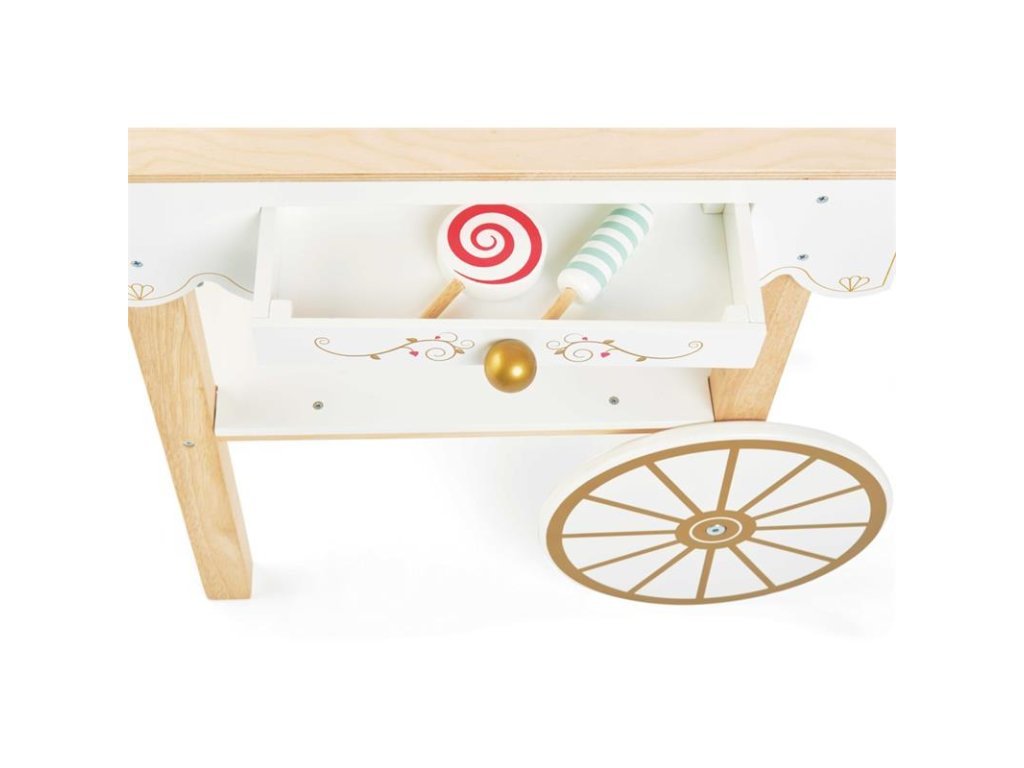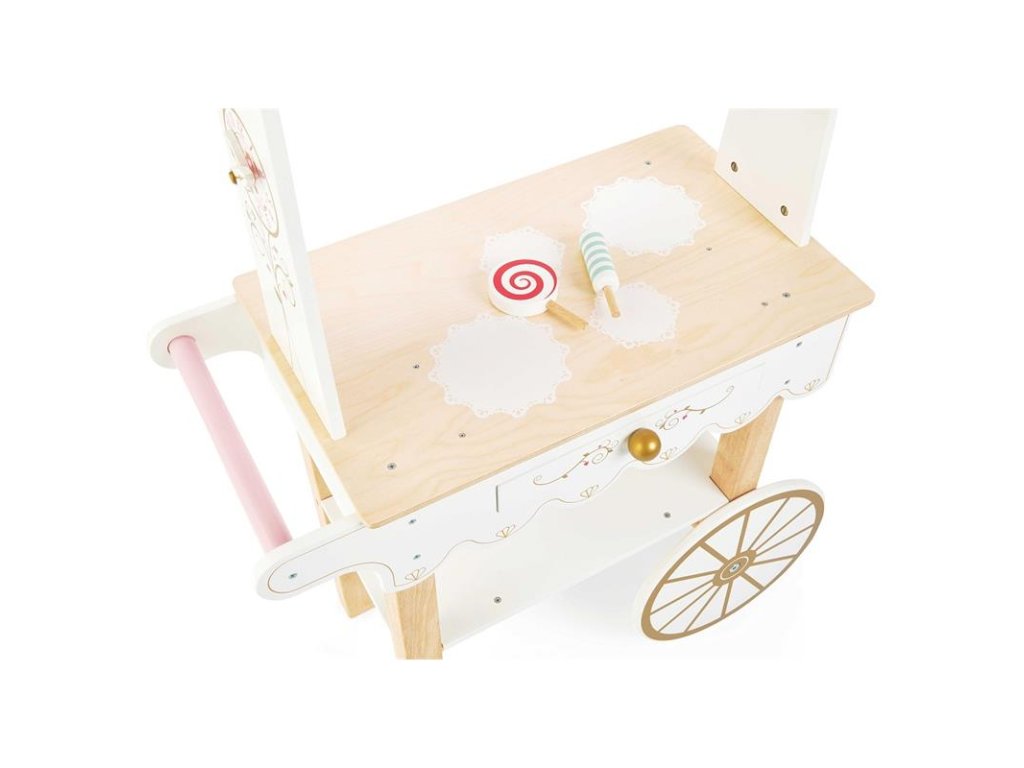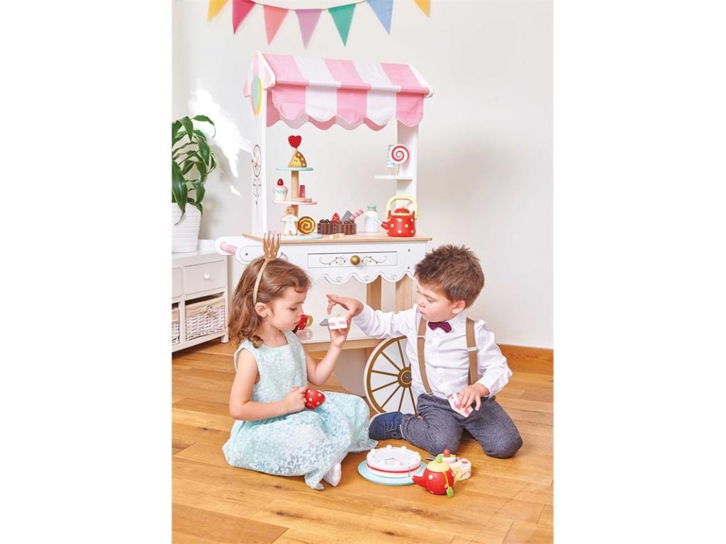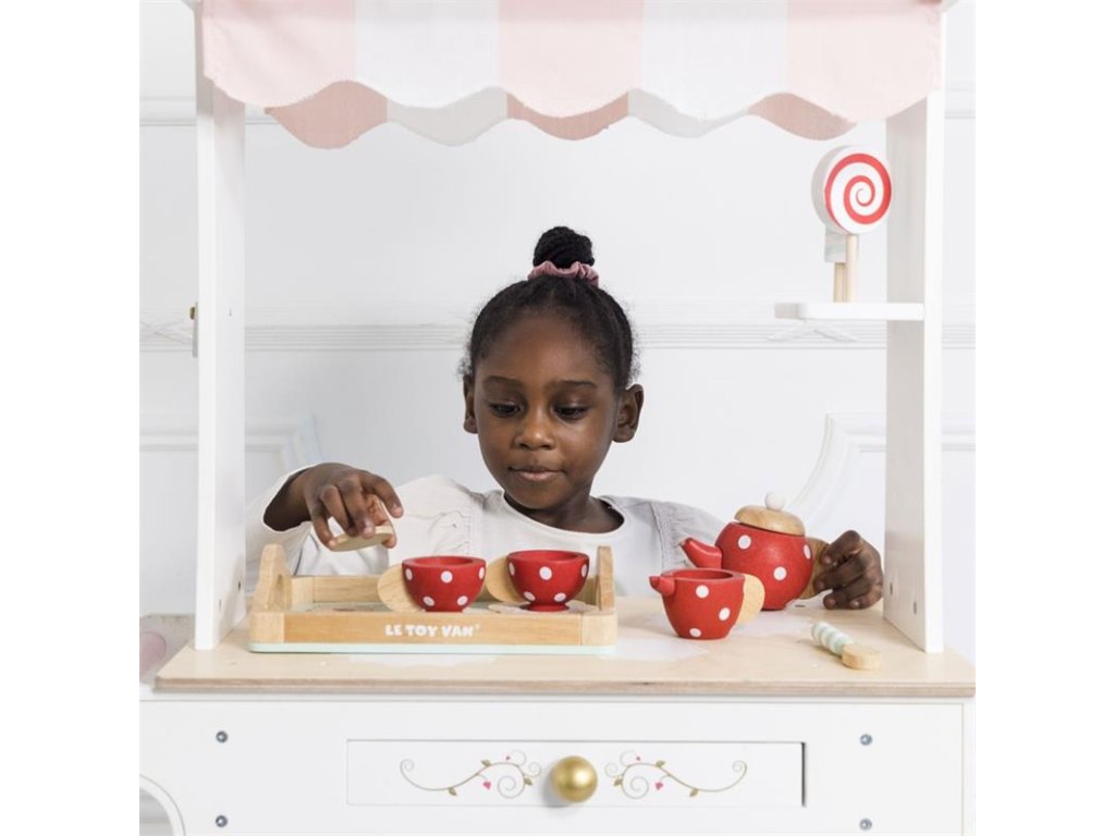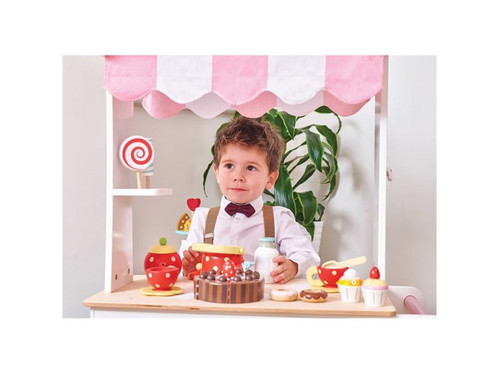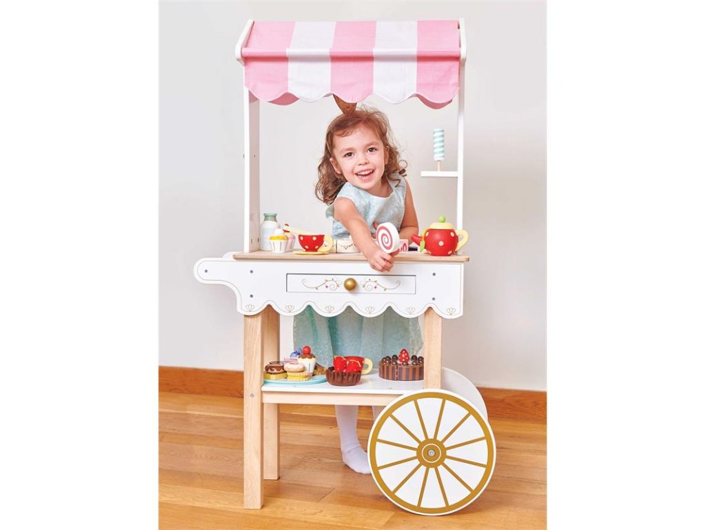 Kto chce čaj?! Klasický dvojkolesový vozík na čaj s krásnou pruhovanou strieškou je bielo-ružový, má aj prírodné drevené prvky. Má aj otváraciu zásuvku na uloženie vašich zásob. Na oboch stranách vozíka nájdete aj ilustrácie ponúkaných nápojov a koláčov. Detaily v zlatej farbe dodávajú čaju o piatej nádych rafinovanosti. Vozík má aj veľký úložný priestor a držiak na sladkosti. Vhodný na použitie s výrobkami z kolekcie Honeybake – zmrzlinami, koláčmi, nápojmi atď. Hlavné vlastnosti: - Vhodné na prípravu jedál a nápojov: Hračky na hranie rolí pomáhajú pri rozvoji sociálnych zručností, reči a tvorivostiEticky vyrobené z pevného, udržateľného kaučukového dreva – zaručuje dlhotrvajúcu zábavu a zároveň šetrí našu planétuZdobené netoxickými farbami, testované podľa najvyšších noriem kolekcie HoneybakeHračky z tejto kolekcie sú vhodné na skúmanie, pomáhajú deťom rozvíjať predstavivosť, sociálne a verbálne zručnosti a kognitívne funkcie. Tradičný dizajn s modernými detailmi deti určite zabaví. Honeybake je kolekcia Le Toy Van, ktorá získala najviac ocenení a za dizajn, kvalitu, bezpečnosť a tiež za svoju vzdelávaciu a hernú hodnotu.Hodnotenie