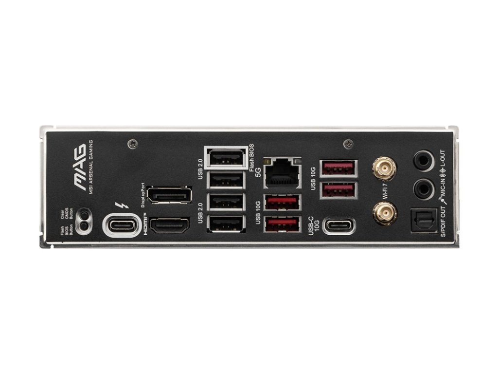MSI MAG B860 TOMAHAWK WIFI Chipset: Intel® B860 Rozměrový formát: ATX (243,84x304,8mm) Podpora pro procesory: Intel® Core™ Ultra Patice procesoru: LGA1851 Paměť: * 4x UDIMM patice podporující až 256GB, DDR5 9200 - 6400 (OC) MT/s / 6400 - 4800 (JEDEC) MT/s paměťové moduly * dvoukanálová architektura paměti * podpora paměťových modulů Extreme Memory Profile (XMP) Grafické výstupy: * 1x Thunderbolt™ 4 Typ-C DisplayPort s maximálním rozlišením 4K 120Hz / 8K 60Hz - Podpora pro DisplayPort 2.1 s UHBR20 nad USB Type-C * 1x DisplayPort s maximálním rozlišením 4K při 60 Hz - Podpora pro DisplayPort verze 1.4 * 1x HDMI™ s maximálním rozlišením 8K při 60 Hz - Podpora pro verzi HDMI 2.1 Zvuková karta: * Kodek Realtek® ALC897 * High Definition Audio * 7.1 kanál * Podpora S/PDIF out Ethernet: Intel ® Killer™ E5000 5Gbps LAN WLAN + Bluetooth: * Intel ® Killer™ BE1750x Wi-Fi 7 (802.11 a, b, g, n, ac, ax, be), podpora frekvenčních pásem 2,4/5/6 GHz + Bluetooth v5.4 Rozšiřující sloty: * 2x slot PCI-E x16 * 1x slot PCI-E x1 Úložný prostor: celkem podporuje 3 slotů M.2 a 4 portů SATA 6Gb/s * 1x M.2, typ 2280/2260 - podpora PCIe 5.0 x4 SSD * 1x M.2, typ 22110/2280/2260 - podpora PCIe 4.0 x4 SSD * 1x M.2, typ 2280/2260/2242 - podpora PCIe 4.0 x4 SSD * 4x port SATA 6Gb/s RAID řadič: podpora RAID 0/1/5/10 pro úložná zařízení SATA USB: Zadní USB (celkem 10 portů) * 4x USB 2.0 * 4x USB 10 Gbps Typ A * 1x USB 10 Gbps Typ C * 1x USB 40 Gbps Typ C Přední USB (celkem 7 portů) * 4x USB 2.0 * 2x USB 5 Gbps Typ A * 1x USB 10 Gbps Typ C Porty na zadním panelu: * 1x Tlačítko clear CMOS * 4x USB 2.0 * 4x USB 10 Gbps Typ A * 1x USB 10 Gbps Typ C * 1x Thunderbolt™ 4 40 Gbps (Typ-C) * 1x Tlačítko Flash BIOS * 1x HDMI * 1x DisplayPort * 1x Tlačítko Q-Flash Plus * 1x RJ-45 * 2x audio jack * 2x anténní konektory * 1x konektor S/PDIF Out Interní porty: Napájení * 1x Napájecí konektor (ATX_PWR) * 2x Napájecí konektor (CPU_PWR) * 1x Napájecí konektor (PCIE_PWR 8pin) Související s ventilátorem a chlazením * 1x CPU Fan * 1x Combo Fan (Pump_Sys Fan) * 5x System Fan Související s úložištěm * 3x M.2 slot * 4x SATA 6Gb/s port USB * 4x USB 2.0 * 2x USB 5 Gbps Typ A * 1x USB 10 Gbps Typ C Ostatní * 3x adresovatelný RGB Gen2 LED strip konektor (JARGB_V2) * 2x Front Panel (JFP) * 1x Chassis Intrusion (JCI) * 1x Front Audio (JAUD) * 1x konektor Tuning Controller (JDASH) * 2x RGB LED konektor (JRGB) * 1x TPM pin header(Podpora TPM 2.0) Odkaz na stránku výrobce: https://www.msi.com/Motherboard/MAG-B860-TOMAHAWK-WIFI/OverviewDodatočné parametre