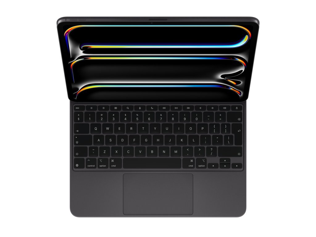 Magic Keyboard k 13palcovému iPadu Pro (M5) – anglický (mezinárodní) – černý Magic Keyboard k iPadu Pro na pohodlné psaní a ovládání pomocí gest na trackpadu má nový elegantní design, hliníkovou dlaňovou opěrku a je krásně přenosný. Má řádek 14 funkčních kláves pro rychlý přístup k funkcím, jako je nastavování jasu displeje nebo ovládání hlasitosti, a USB-C konektor na průchozí nabíjení. Díky plovoucí konzolové konstrukci si hladce nastavíš ten správný pozorovací úhel. Nový, větší trackpad s haptickou odezvou je ideální na přesné úkony, jako je úprava tabulek nebo výběr textu. A podporuje ovládání iPadu známými, intuitivními Multi-Touch gesty. iPad Pro je v tomhle odolném krytu chráněný z obou stran, takže se s ním můžeš vydat kamkoli. Hlavní vlastnosti: *Je tenký a přenosný a díky konzolové konstrukci se dá hladce nastavit do takového úhlu, ve kterém se ti na obrazovku dívá nejlíp. *Větší vestavěný trackpad s haptickou odezvou. *Řádek 14 funkčních kláves pro rychlý přístup k praktickým funkcím, jako je nastavování jasu displeje nebo ovládání hlasitosti. *Pohodlné podsvícené klávesy a nůžkový mechanismus s 1mm zdvihem pro tiché psaní s příjemnou odezvou. *Navržený pro Multi-Touch gesta a kurzor v iPadOS. *USB-C konektor v odolném pantu z přesně zpracovaného hliníku. *V zavřeném stavu chrání iPad Pro z obou stran. Kompatibilita: *13palcový iPad Pro (M5) *13palcový iPad Pro (M4)Dodatočné parametre
