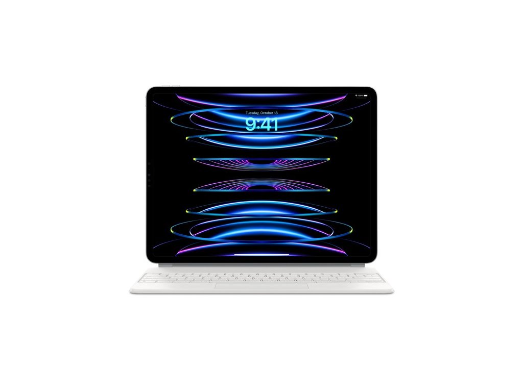 Magic Keyboard k 12,9'' iPadu Pro (6. generace) Magic Keyboard je dokonalý doplněk 12,9'' iPadu Pro. Výborně se na něm píše, má trackpad s novými možnostmi ovládání iPadOS a taky USB-C port na nabíjení iPadu. Chrání ho zepředu i zezadu. iPad Pro se k plovoucí konzolové konstrukci Magic Keyboardu přichycuje magneticky, takže ho hladce nastavíš přesně do takového úhlu, ve kterém se ti na něj dívá nejlíp. * Pohodlné podsvícené klávesy a nůžkový mechanismus s 1mm zdvihem pro tiché psaní s příjemnou odezvou. * Navržený pro Multi-Touch gesta a kurzor v iPadOS. * Hladce si nastavíš přesně takový úhel, ve kterém se ti na obrazovku dívá nejlíp. * Má port USB-C na nabíjení iPadu Pro, takže si k volnému portu iPadu můžeš připojit další doplňky. * V zavřeném stavu chrání iPad Pro z obou stran. Rozložení klávesnice: ukrajinské Barva: bílá Požadavky na systém: 12,9'' iPad Pro (3., 4., 5. nebo 6. generace) s iPadOS 14.5 nebo novějším Kompatibilita: modely 12,9'' iPad Pro (6. generace, 5. generace, 4. generace, 3. generace)Dodatočné parametre