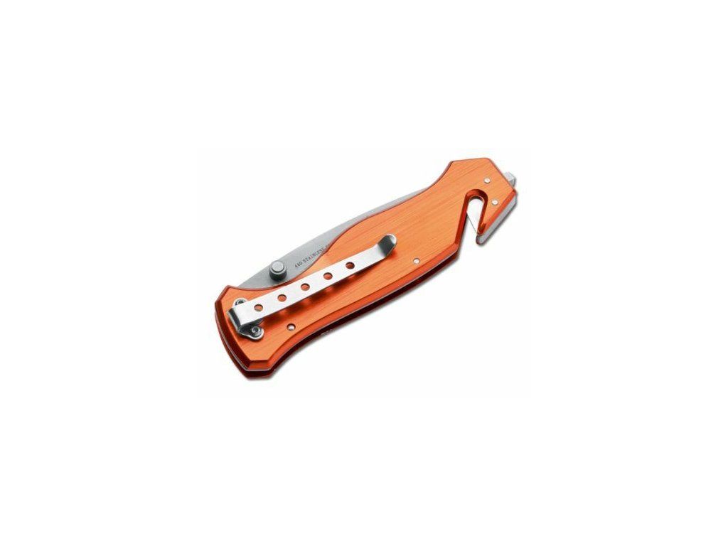 Rukoväť je z oranžového eloxovaného hliníka s logom záchranárov. V spodnej časti má rozbíjač skla a rezač bezpečnostných pásov. So sponou na vrecká.
