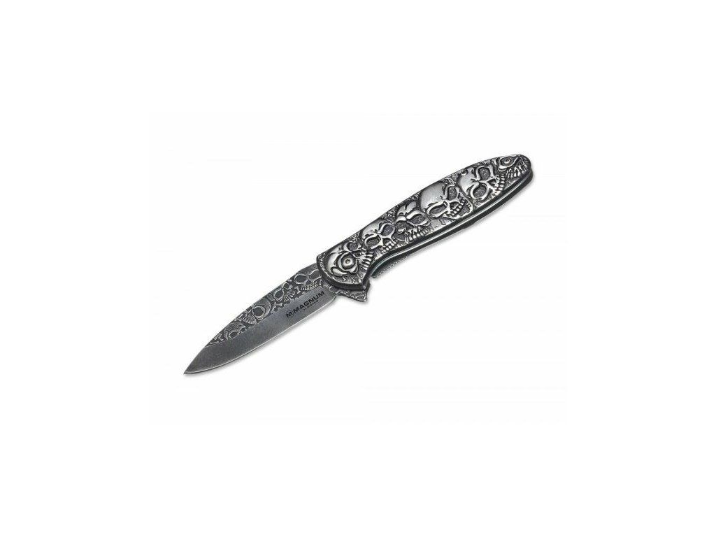 Magnum 01SC519 Dia de los Muertos vreckový nôž s asistenciou 8,5 cm, šedá, celooceľový, lebky