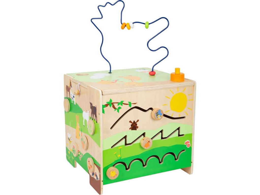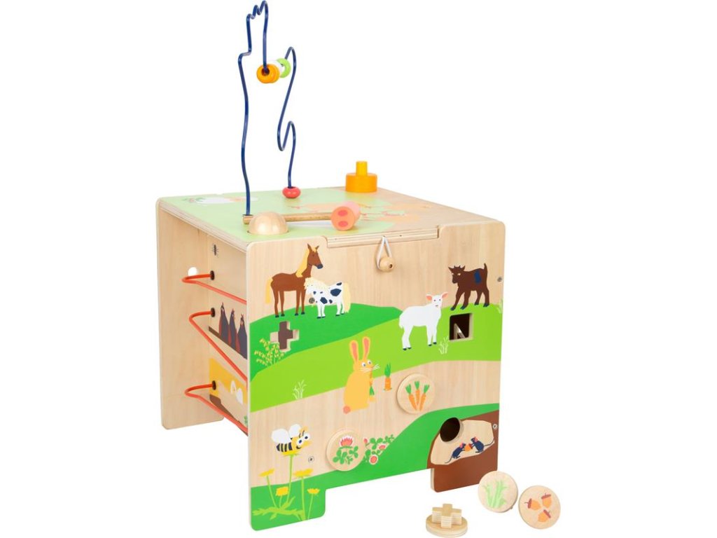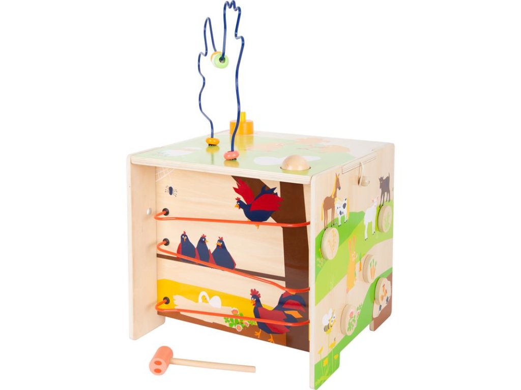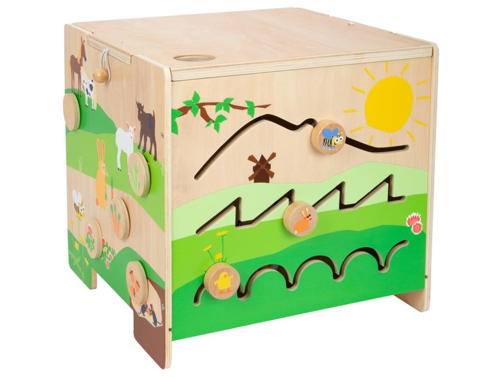 Motorická kocka trénuje rozpoznávanie farieb a tvarov, zároveň deťom poskytuje základné informácie o hospodárskych zvieratách.