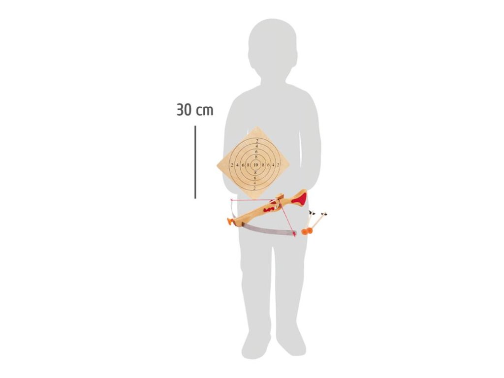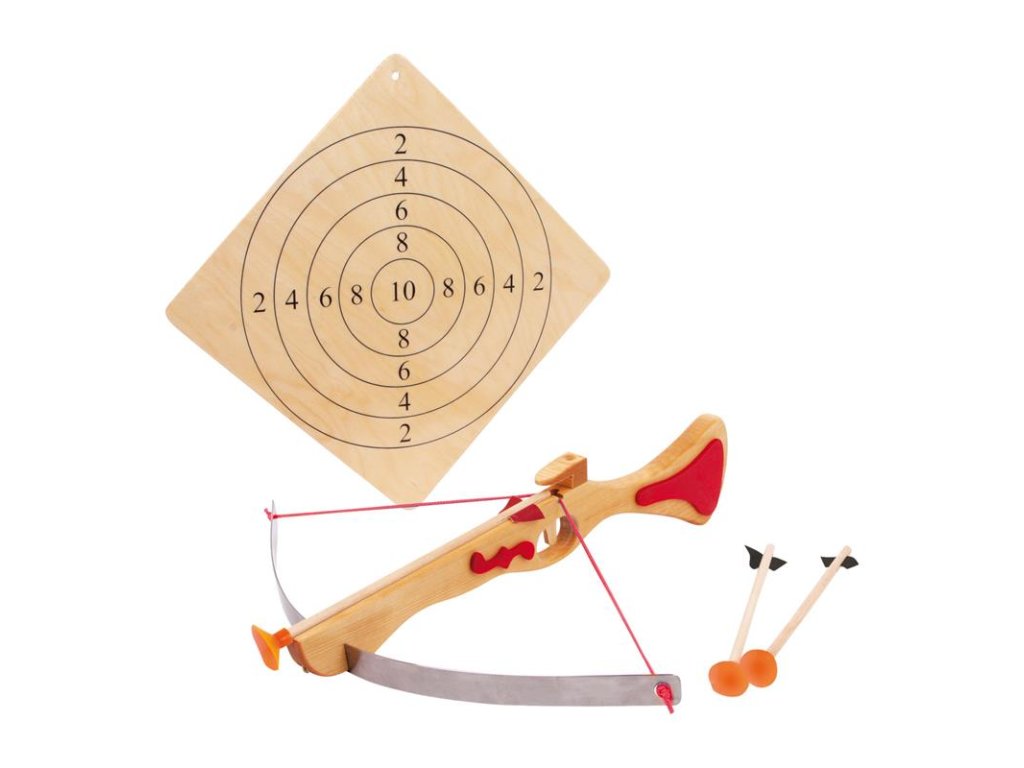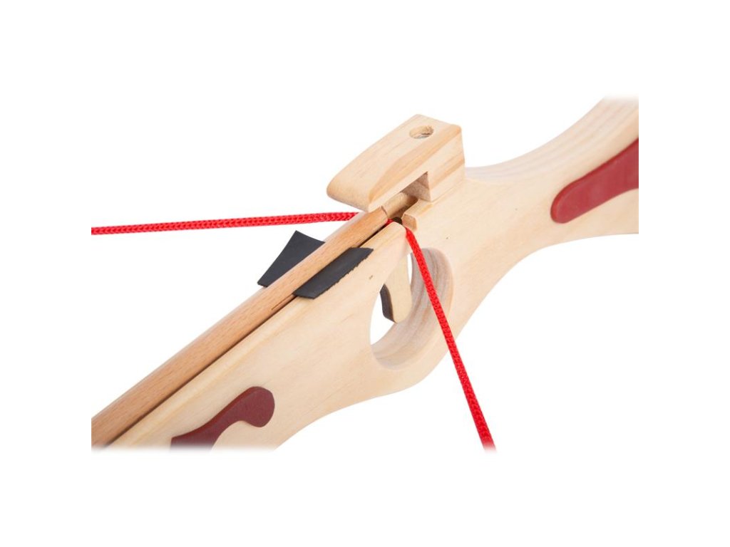 S touto kušou môžu deti preukázať svoju presnosť. Strelecká zábava môže prebiehať bez zaváhania, pretože drevená športová kuša strieľa len drevené šípy s prísavkami. Kvalitné gumové krytky umožňujú šípom priľnúť k hladkému povrchu. Hlavné vlastnosti: - Šípky sú vyrobené z kvalitného materiálu, ktorý je vhodný na streľbuDodatočné parametre