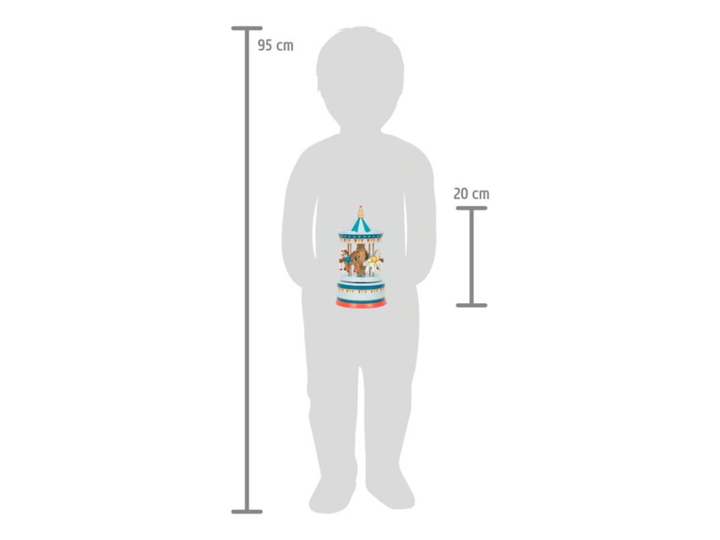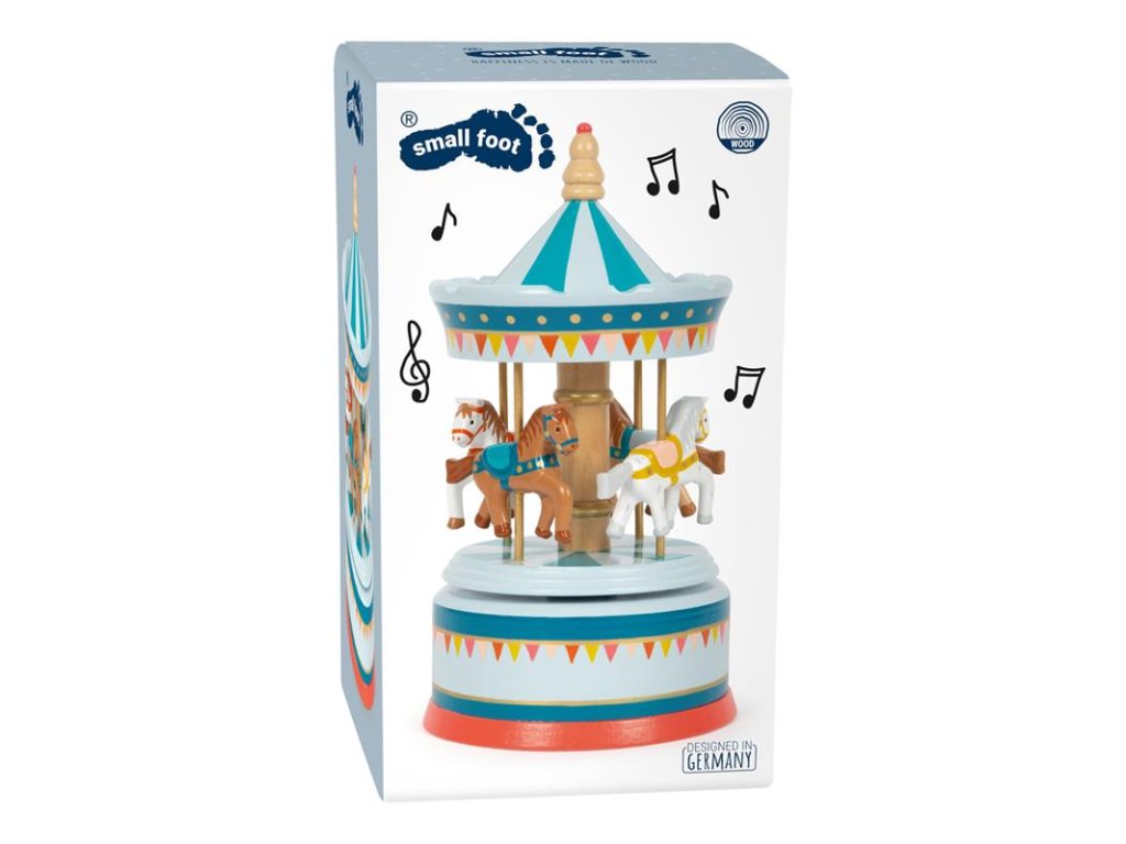 Kto tu zaspal? Táto klasická drevená hracia skrinka uspí každé malé dieťa. Kruhový kolotoč s koníkmi sa veselo točí na melódiu piesne "Kde mám začať?". Dekoratívne farby a nostalgický dizajn robia z tejto hračky skutočný pútač pozornosti na nočnom stolíku. Kto opäť vytiahne hudobnú skrinku? Hlavné vlastnosti: deti si túto hračku zamilujú krásny doplnok do detskej izby alebo herne spĺňa európsku bezpečnostnú normuDodatočné parametre