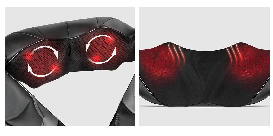 8 masážních hlavic pro Shiatsu masáž precizně simuluje pohyby rukou profesionálního maséra pro hloubkové uvolnění všech svalových tkání.