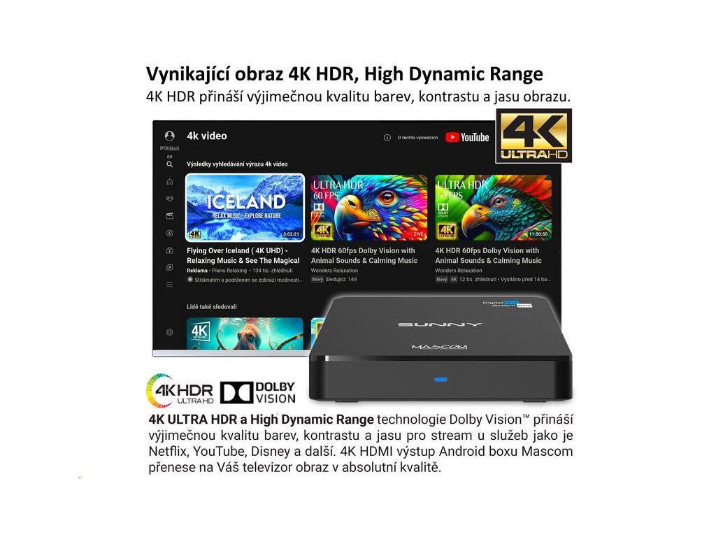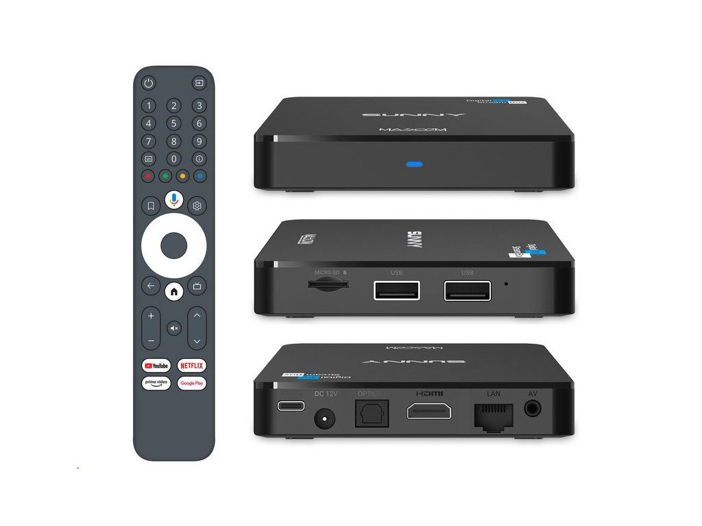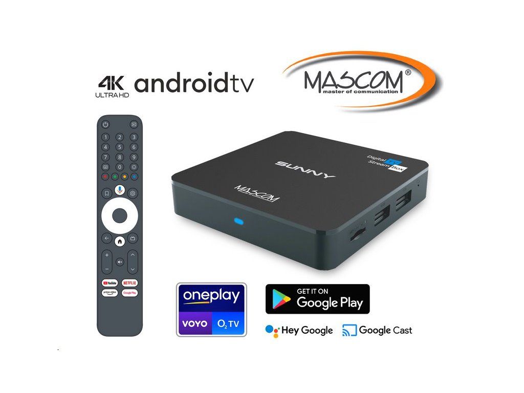 Objevte nový rozměr domácí zábavy s MASCOM SUNNY Android TV 12 – multimediálním přehrávačem, který promění každý televizor v plnohodnotnou chytrou 4K Android TV stanici.