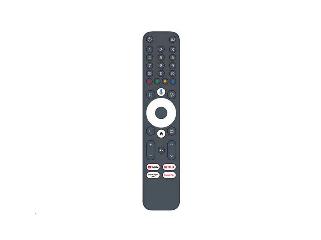 MASCOM SUNNY myslí i na pohodlí. Jeho Bluetooth dálkový ovladač má nejen mikrofon pro hlasové ovládání, ale i numerická tlačítka pro rychlou volbu TV kanálů u služeb jako Oneplay, Skylink nebo Telly. Dále nabízí přímý vstup na Netflix, YouTube, Google Play nebo Prime Video.