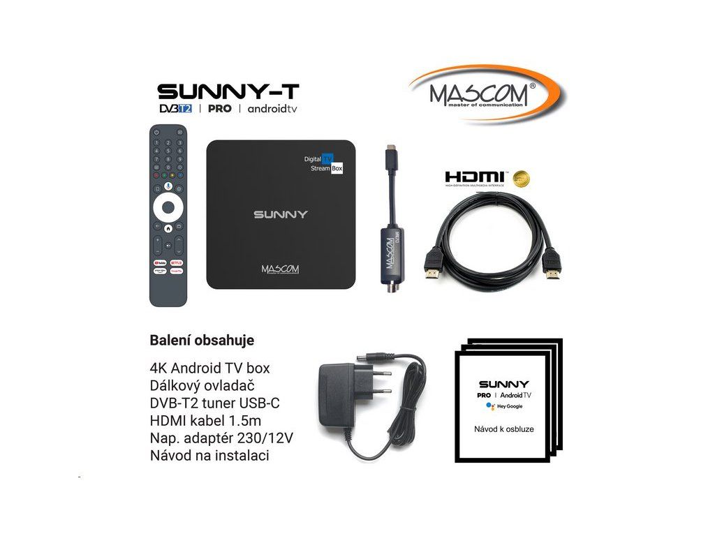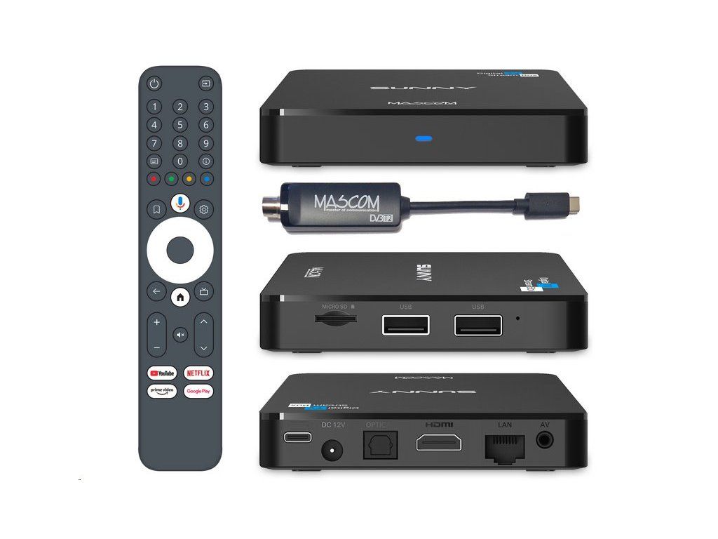 MASCOM SUNNY-T Android TV 12 4K UHD Android TV multimediální přehrávač s tunerem DVB-T2