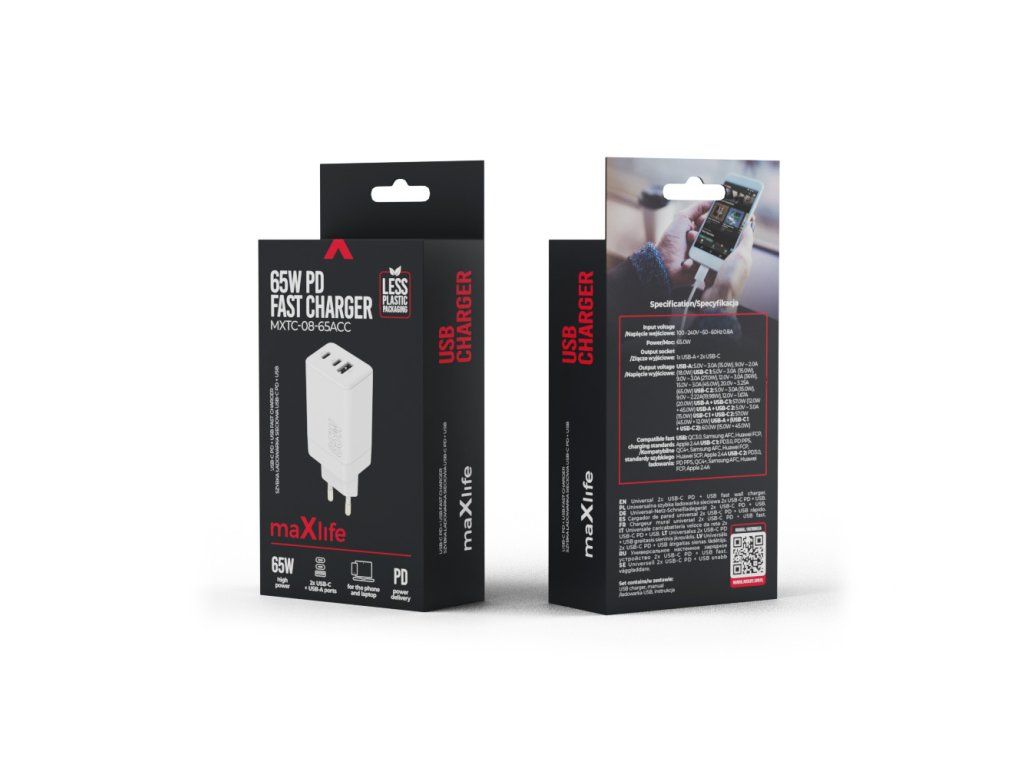 Maxlife MXTC-08-65ACC PD QC sieťová nabíjačka 2x USB-C 1x USB 65W biela (OEM0101206)