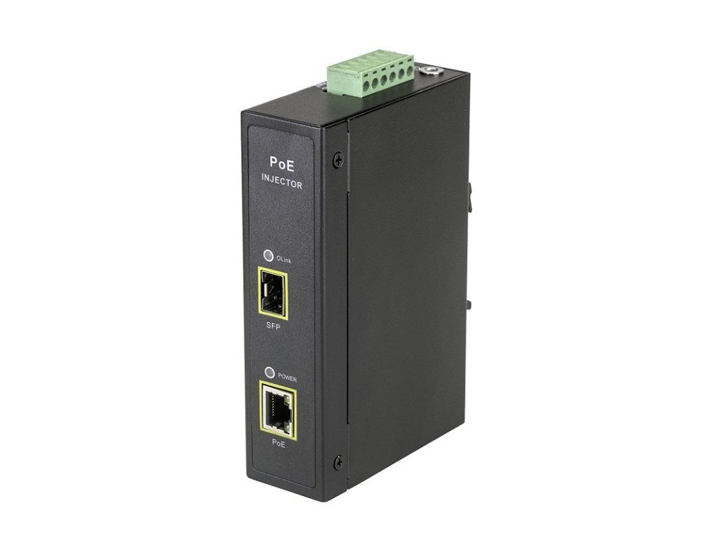 MaxLink MAXPIDIN60F je aktivní PoE injektor s montáží na DIN lištu se vstupním DC napájením 44 až 57V a vestavěným měničem napětí. Injektor má jeden výstupní POE LAN port a jeden SFP port.Výstupem tohoto zdroje je gigabitový port s podporou 802.3af/at PoE (55V) určeným pro WiFi, VoIP či bezdrátová pojítka. PoE je distribuováno po pinech 1,2,7,8 (-), 3,4,5,6 (+). SFP port slouží jako vstup pro data. Celkový výkon zdroje je 60W. Výhodou zdroje je 6kV (10/700us) přepěťová ochrana. Tento PoE injektor je vhodný na místa, kde již máte centrální zdroj napětí - ať už solární panel nebo silný zdroj napětí. Technické parametry Fyzické charakteristiky Provozní teplota [°C]: -40 až 65 Hmotnost [g]: 485 Hloubka [mm]: 86 Šířka [mm]: 35 Výška [mm]: 145 Konektory a rozhraní Rychlost ethernetu [Mbps]: 10/100/1000 Gigabit LAN: Ano Optické rozhraní: (1) 1000Mbps Napájení Napájení na pinech: 1,2,7,8 (-), 3,4,5,6 (+) Výstupní výkon - 1port [W]: 60 LED indikace: Ano Podporované PoE-Out standardy: 802.3af, 802.3at, 802.3bt Počet PoE Out portů: 1 Výstupní napětí [V]: 55Dodatočné parametre