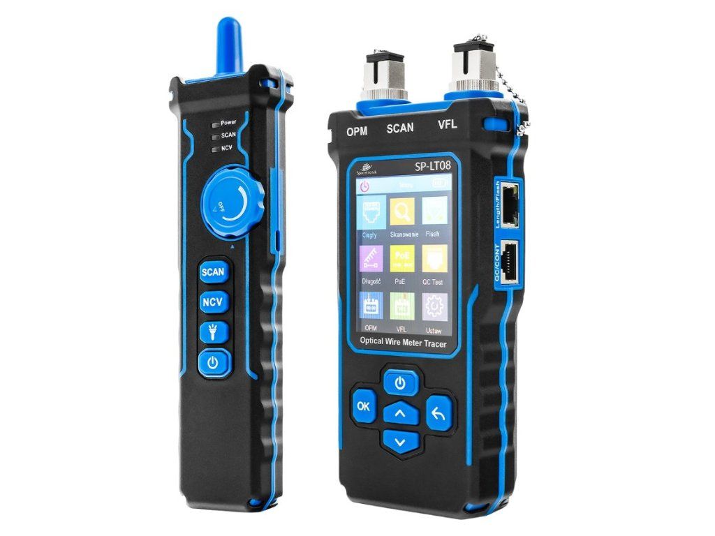 Merač a Tester optických káblov a UTP Spacetronik SP-LT08, NCVSP-LT08 je multifunkčný tester optických sietí a LAN s vizuálnym lokalizátorom porúch, OPM,
