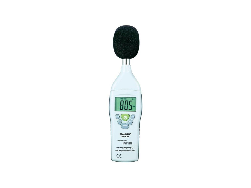 Jednoduchý a spoľahlivý merač hluku ST-805L (SL-100) kompaktnej konštrukcie. Možnosť výberu frekvenčnej charakteristiky A (sluchová charakteristika ľudského ucha) alebo C (skutočná úroveň hluku). Prístroj možno kalibrovať pomocou štandardného akustického kalibrátora 94 dB. Hlukomer sa dodáva v luxusnom puzdre, ktoré zaručuje 100 % ochranu.