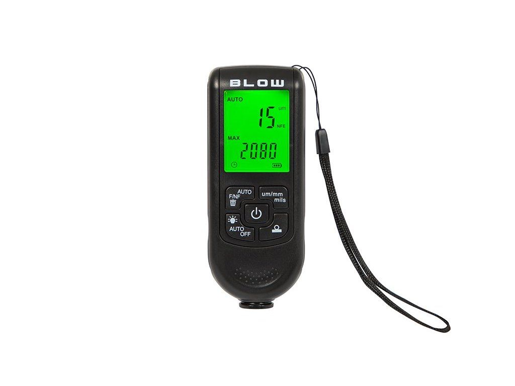 Merač hrúbky laku BLOW je vhodný na použitie na oceli aj na hliníku Vďaka modernej sonde vykonáva zariadenie veľmi presné merania v širokom rozsahu 0-2000um.