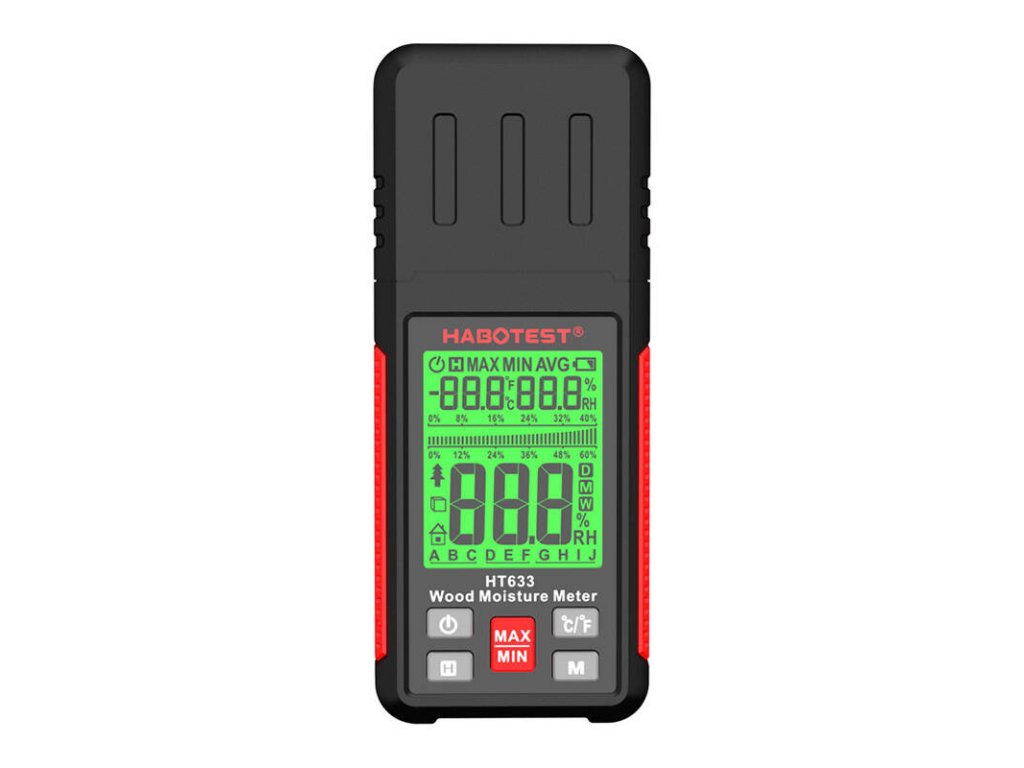 Prístroj má 2 hroty, ktoré poskytujú rýchle a presné merania - využijete ho na materiály, ako je drevo, betón, omietka a tehla. Pomocou prístroja Habotest HT633 môžete merať aj vlhkosť a teplotu okolia. Displej LCD poskytuje pohodlný prístup k informáciám takmer za akýchkoľvek podmienok a nízku, strednú alebo vysokú úroveň vlhkosti signalizuje zelenou, oranžovou, resp. červenou farbou.