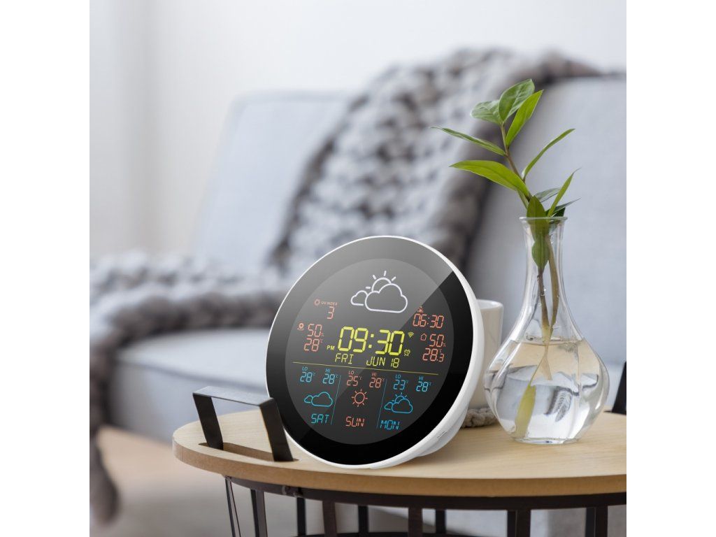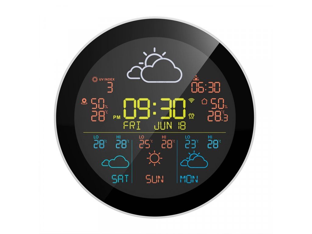 Chytrá meteostanice s externím senzorem. Aplikace SmartLife pro telefon v češtině (dostupná pro Android a iOS), třídenní předpověď počasí, možnost připojení až tří externích čidel?. Zobrazuje informace o počasí, čas, datum a teplotu a vlhkost.
