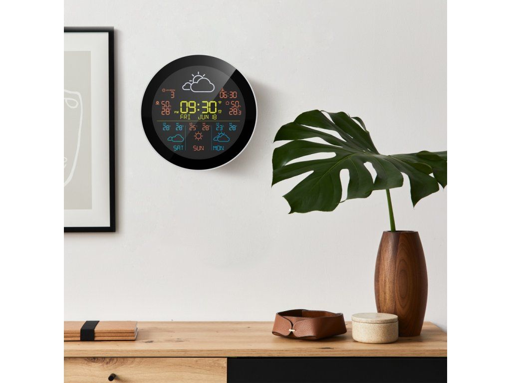 TESLA Device MS360 je chytrá meteostanice s externím senzorem, která přináší přehled o počasí přímo do vašeho domova. S připojením na mobilní aplikaci získáte třídenní předpověď počasí s grafikou, aktuální hodinovou předpověď s grafickým znázorněním, východ a západ slunce a UV index. Navíc můžete sledovat teplotu a vlhkost v místnosti a díky barevnému displeji máte tyto informace vždy na očích.